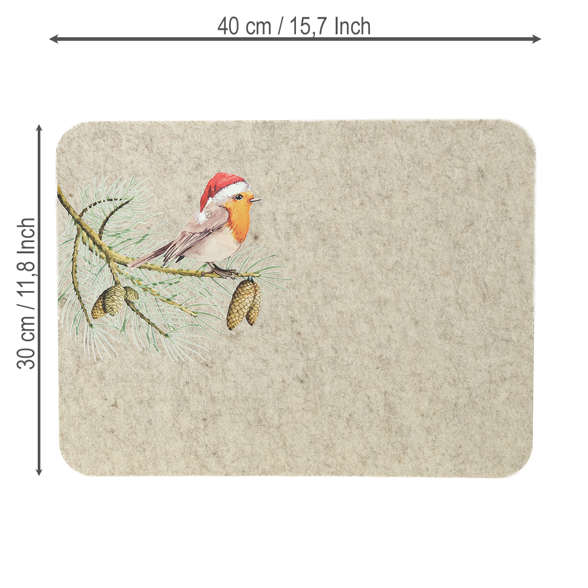 Tovaglietta in feltro natalizia Pettirosso Grigio 40×30cm 4pz
