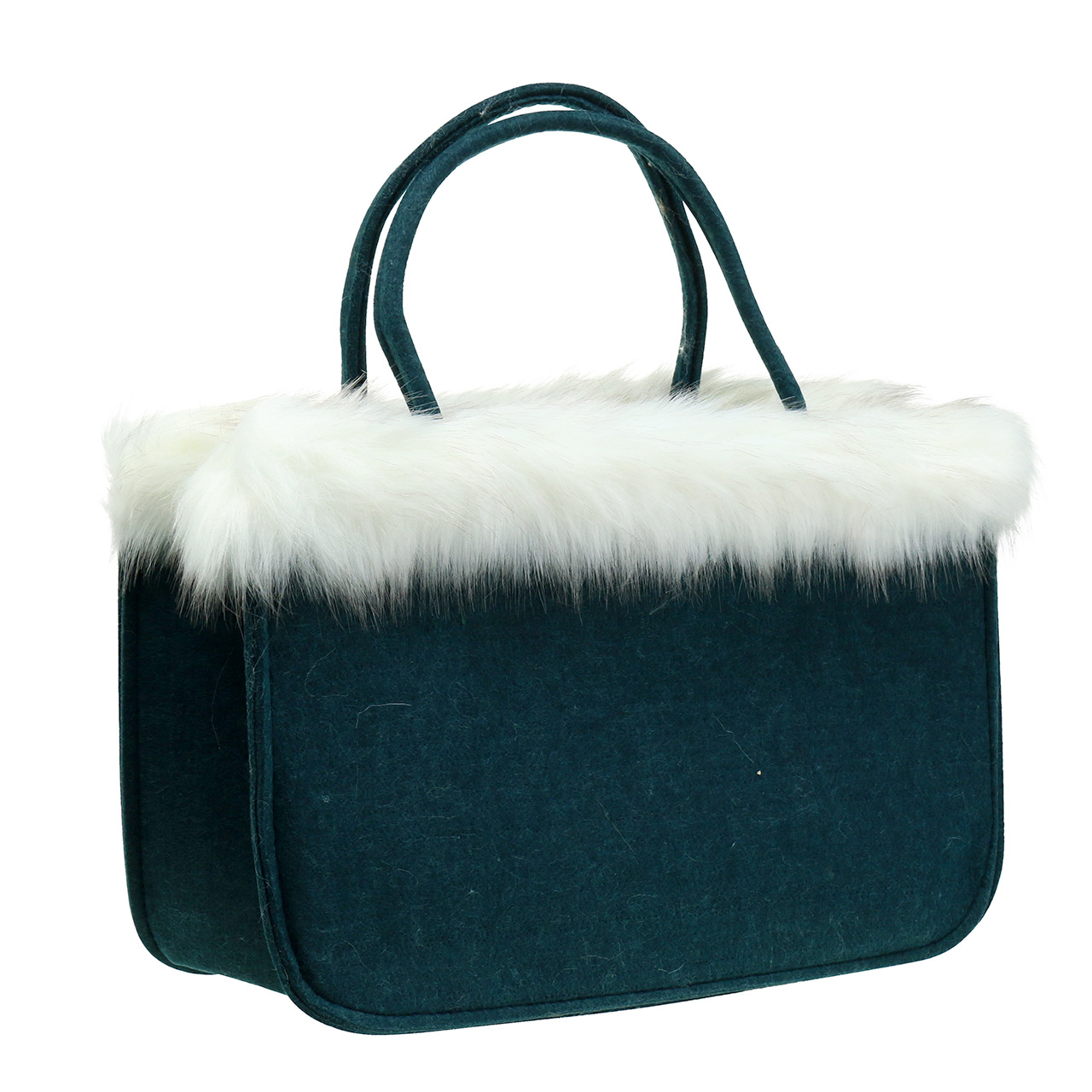 Borsa in feltro con bordo in pelliccia blu petrolio 38 cm x 24 cm x 20 cm