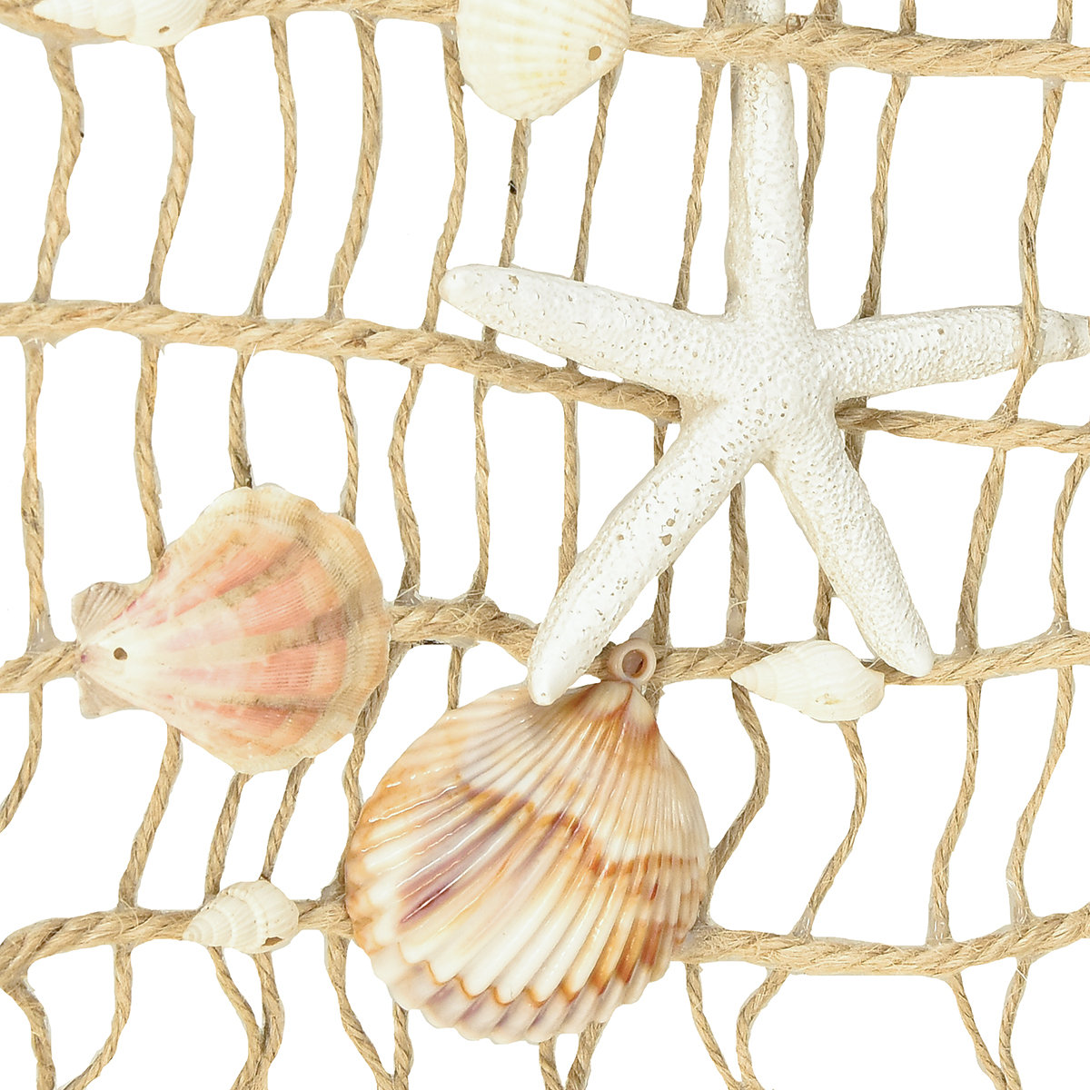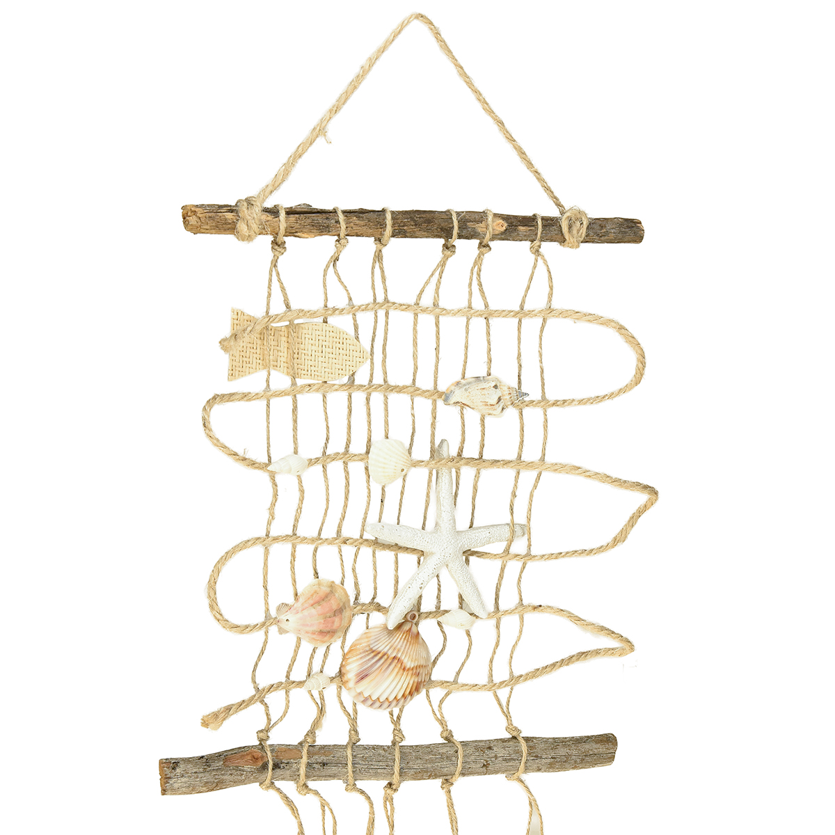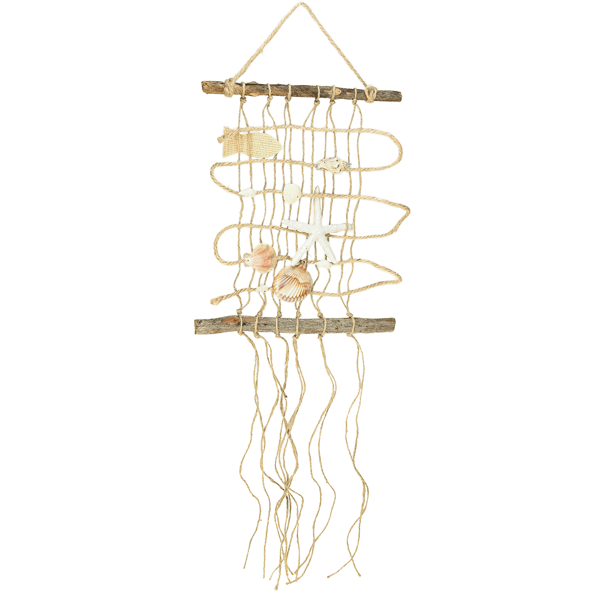 Rete da pesca in iuta con conchiglie, decorazione murale marittima 25×55cm