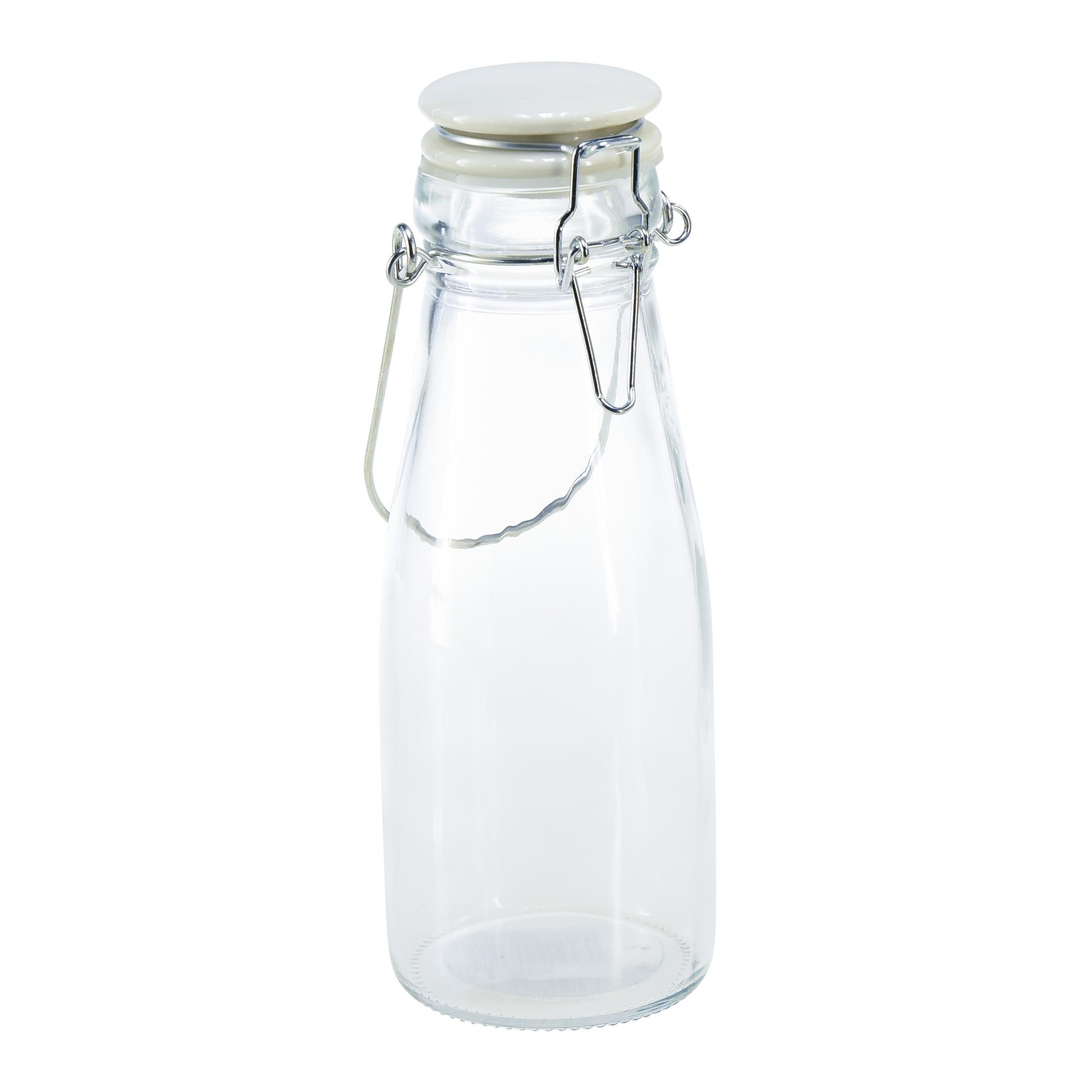 La decorazione della bottiglia ha una pratica chiusura a clip. Visivamente, la bottiglia di vetro ricorda le bottiglie di succo o di latte. Ciò è supportato anche dalla maniglia in metallo fissata al sistema di chiusura.Riempi la bottiglia di latte decorativa con fiori secchi e poi posizionali su un vassoio con decorazioni primaverili o estive. Anche le luci in vetro sono di tendenza. Allora perché non includere nella bottiglia una piccola stringa di luci con batterie?