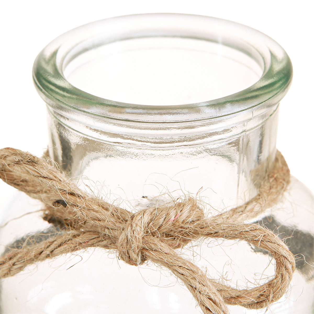 Scopri la perfetta simbiosi tra vetro, legno e metallo con i nostri vasi bottiglia: l'accessorio ideale per la decorazione della tua tavola. La combinazione di materiali crea un fascino vintage unico che crea un'atmosfera marittima in ogni stanza. Queste due bottiglie di vetro poggiano su una base di legno e sono sostenute da un supporto in metallo nero. Il nero senza tempo aggiunge un tocco moderno, mentre i nastri di iuta sul collo della bottiglia aggiungono un tocco rustico a qualsiasi composizione. Misurando circa 23 cm × 12 cm × 19,5 cm, questo set è perfetto per esporre con eleganza sia fiori freschi che secchi.