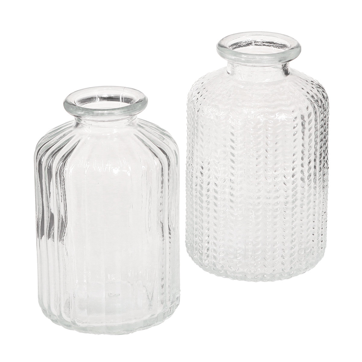 Flaschenvase Glas Minivasen mit Retro Dekor H9cm 4St