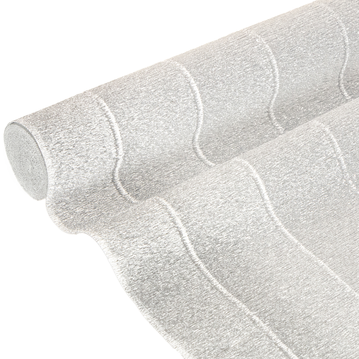 La carta crespa per fioristi in argento viene fornita come un rotolo e può essere piegata, tagliata e piegata. La carta decorativa ha una larghezza di circa 50 centimetri e una lunghezza di 250 centimetri.