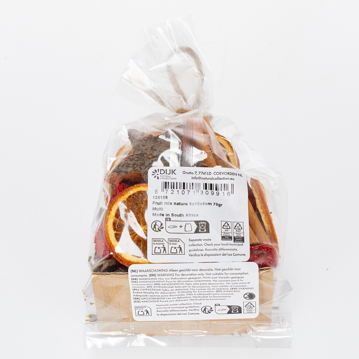 - Contenu : Tranches d'orange séchées, bâtons de cannelle, anis étoilé, étoiles en bois, piments rouges décoratifs