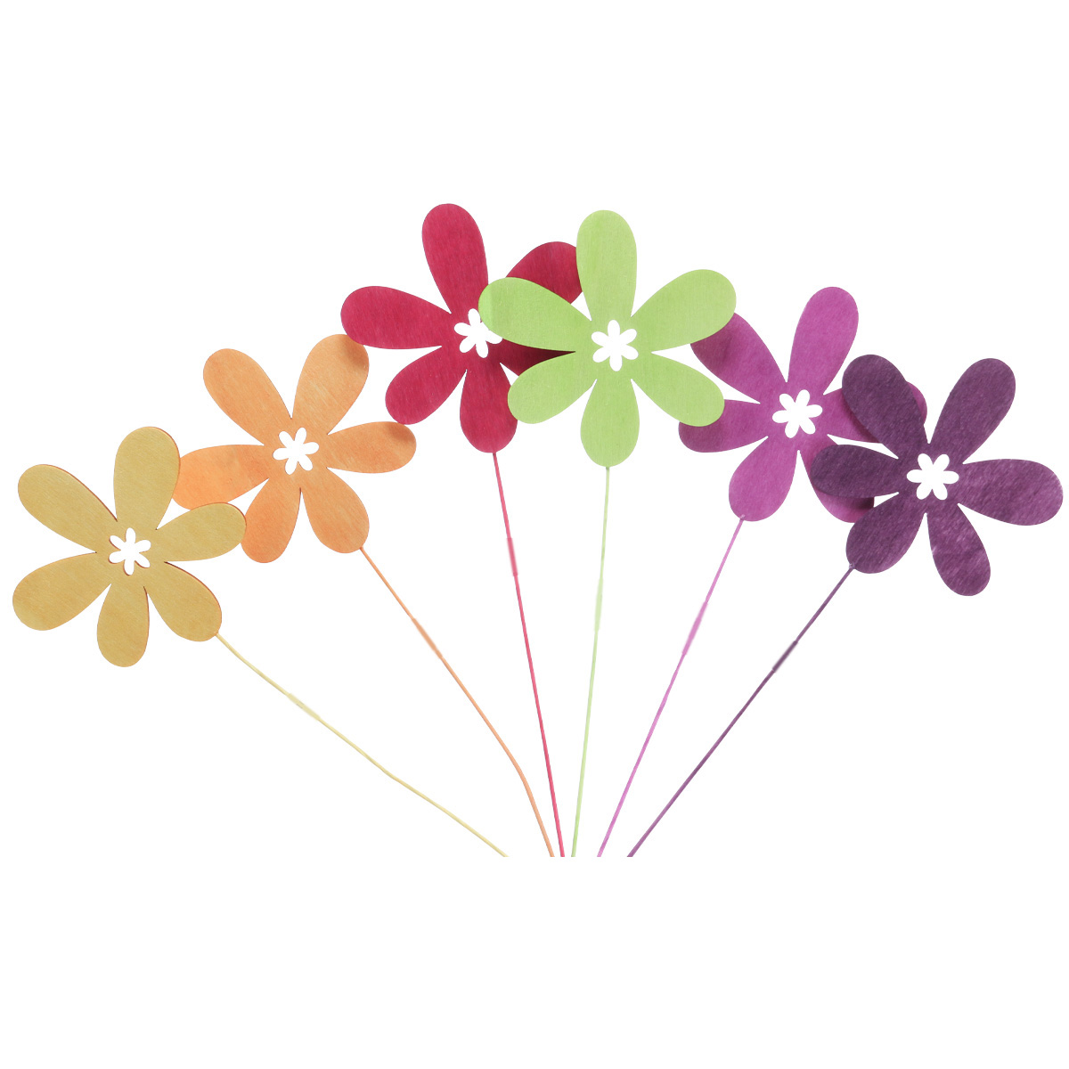 Frühlingsdeko Blumenstecker Holz Blüte 30,5cm 18 St