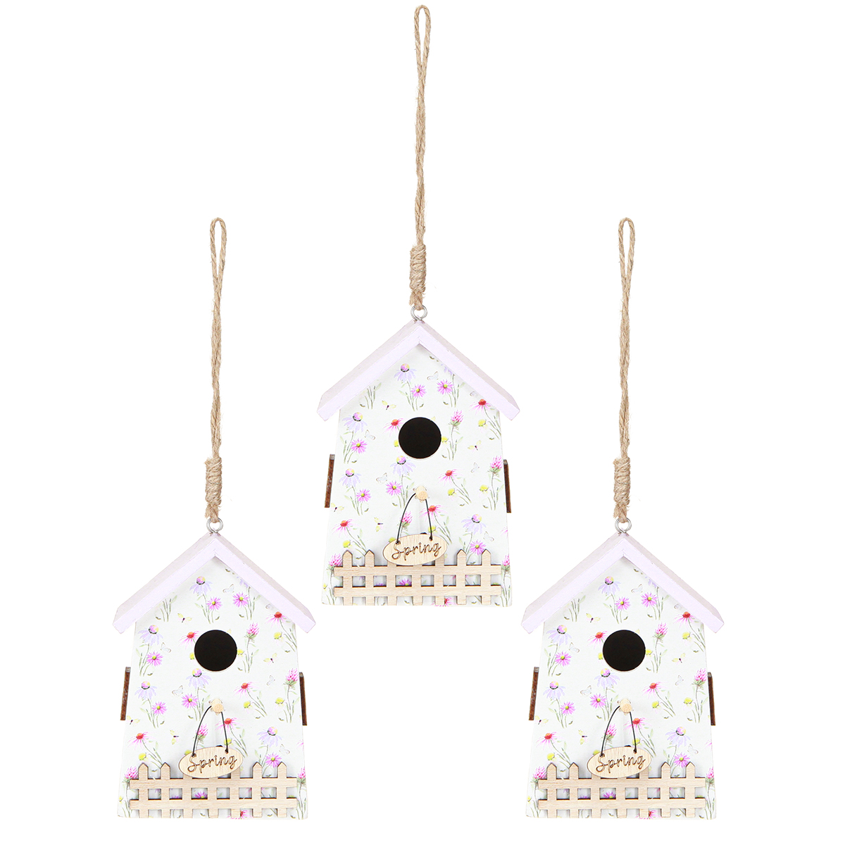Décoration de Printemps Nichoir Lilas Blanc H11cm 3 Pcs
