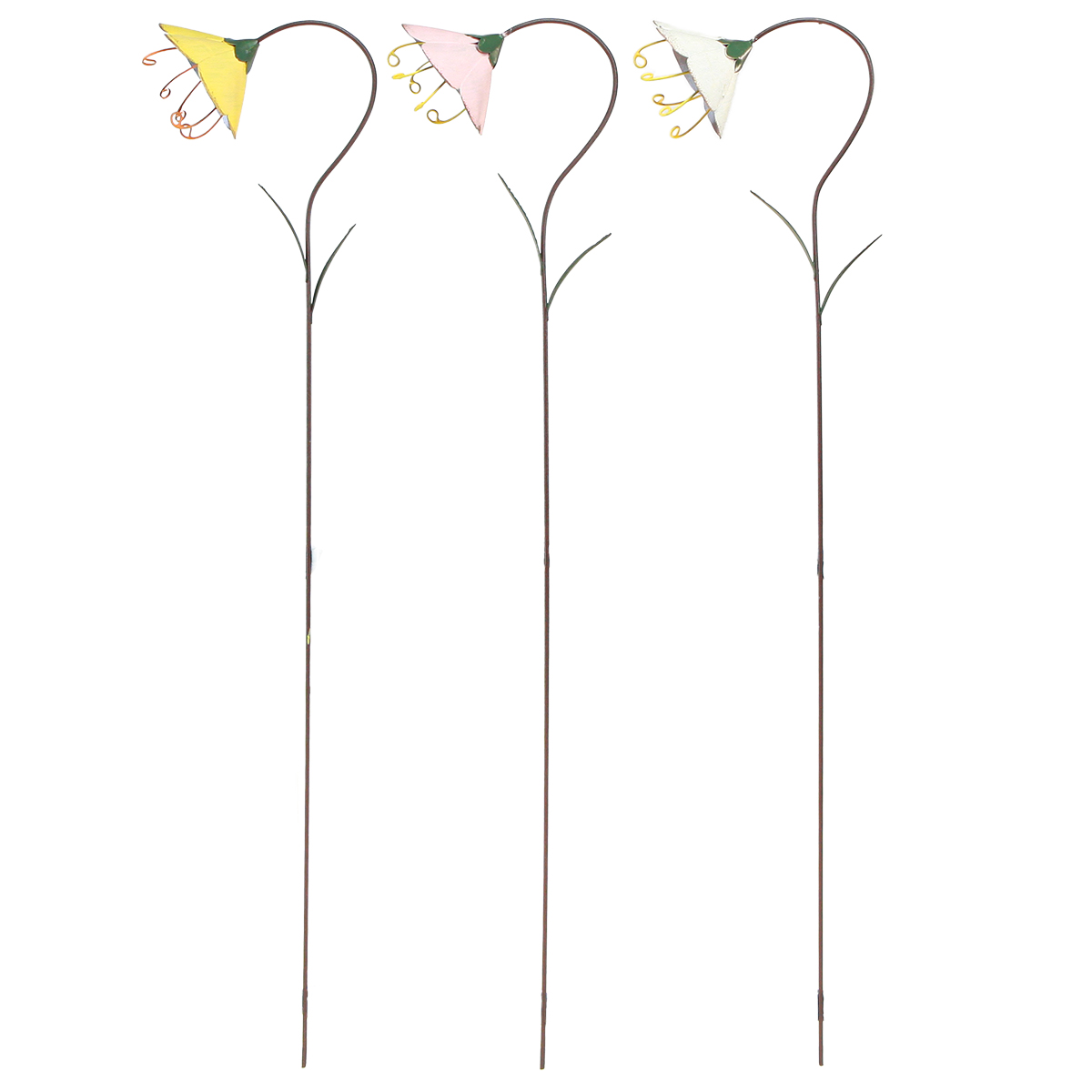 Piquet de Jardin Fleur Fleurs en Métal Jaune Rose Blanc 49cm 3 pcs