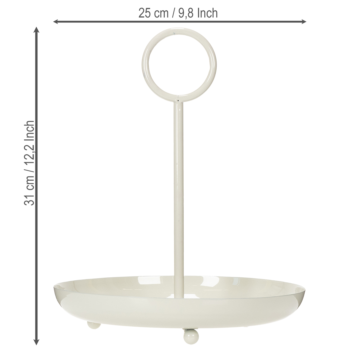 Der runde Ringgriff oben lässt sich leicht greifen und macht das Positionieren kinderleicht. Sie möchten ihn schnell vom Esstisch aufs Sideboard setzen? Kein Problem. Dank der Höhe von 31 cm lässt er sich außerdem gut mit größerem Dekomaterial wie Vasen oder Blumenarrangements kombinieren. Einfach toll für Hochzeiten, Jubiläen oder Kaffeekränzchen.