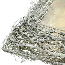 Ein Arrangement aus Tannengrün, Trockenblumen, Exoten und Zapfen sieht etwa in einem Pflanzherz oder –kreuz aus geweißten Reben wunderschön aus. Alternativ können Sie natürlich auch zu einem Pflanzkissen aus naturbelassenen Zweigen oder einem extravagant geformten Pflanzgefäß greifen. Wenn es eher eine frische Bepflanzung für den Frühling oder Sommer sein soll, dann entscheiden Sie sich doch für unsere mit Moos verzierten Pflanzschalen.