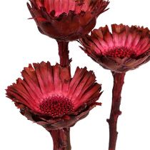 Kleinere Blüten sehen eher unscheinbar aus, aber die langen Blütenblätter mancher Arten wirken sehr elegant. Die Blüten anderer Arten wirken wie Rosetten, haben die Form eines Kelches, einer flachen Schale oder eines glatten Tellers. Manche Proteen haben feine, gefiederte Blütenblätter, während andere eher knubbelig aussehen. Knospen lassen sich genauso trocknen wie voll geöffnete Blüten, und in seltenen Fällen befinden sich mehrere hölzerne Blüten an einem Ast. Farblich zeigen die Blüten eine ähnliche Vielfalt wie in ihrer Erscheinungsform: Von einem dezenten Braunton über Gelb, Orange und leuchtendem Rot bis hin zu knalligem Pink gibt es alles. Auch weiße, bleich wirkende Blüten und Äste gibt es. Proteen machen sich nicht nur gut als Grabschmuck, sondern eignen sich auch für die Herstellung von Wandschmuck und Gestecke für den Wohnbereich.