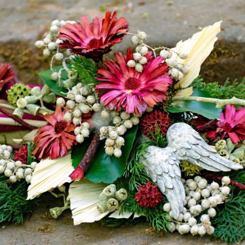 Trockenblumen sind in der Herstellung von Gedenkfloristik beliebt, denn sie halten lange. Viele Pflanzen, die im kalten Mitteleuropa nicht heimisch sind, lassen sich in der getrockneten Variante sehr gut verarbeiten, sie sind formschön, ausdrucksstark und robust. Proteen, die in ihrer großen Artenvielfalt in Afrika heimisch sind, gehören dazu. Die exotischen Blüten wachsen hierzulande nicht, werden aber als langlebige Blüten eingeflogen. Getrocknet werden sie traditionell in Gestecken, Kränzen und Trockensträußen verarbeitet.