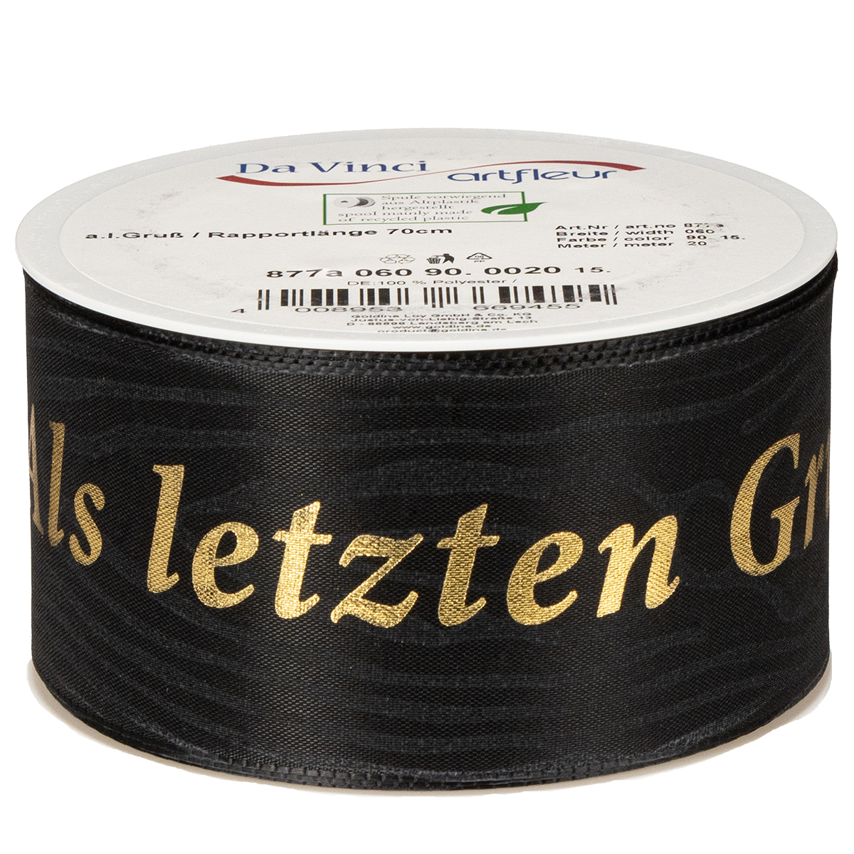 Ein Abschied ist nie einfach. Mit einer angemessenen Dekoration drücken wir jedoch unsere Wertschätzung und Anteilnahme aus. Unsere Gedenkschleife mit dem Schriftzug „Als letzten Gruß“ bietet genau diese Möglichkeit. Das strukturierte schwarze Band, verziert mit einer schimmernden Goldschrift, verleiht Kränzen und Trauerarrangements die gewünschte Würde und Eleganz. Haben Sie schon einmal nach der perfekten Ergänzung für eine feine Grabdekoration gesucht? Diese Trauerschleife ist die Antwort. Sie vereint schlichte Eleganz und erstklassige Materialqualität, um einen besonders ansprechenden und respektvollen Akzent zu setzen.