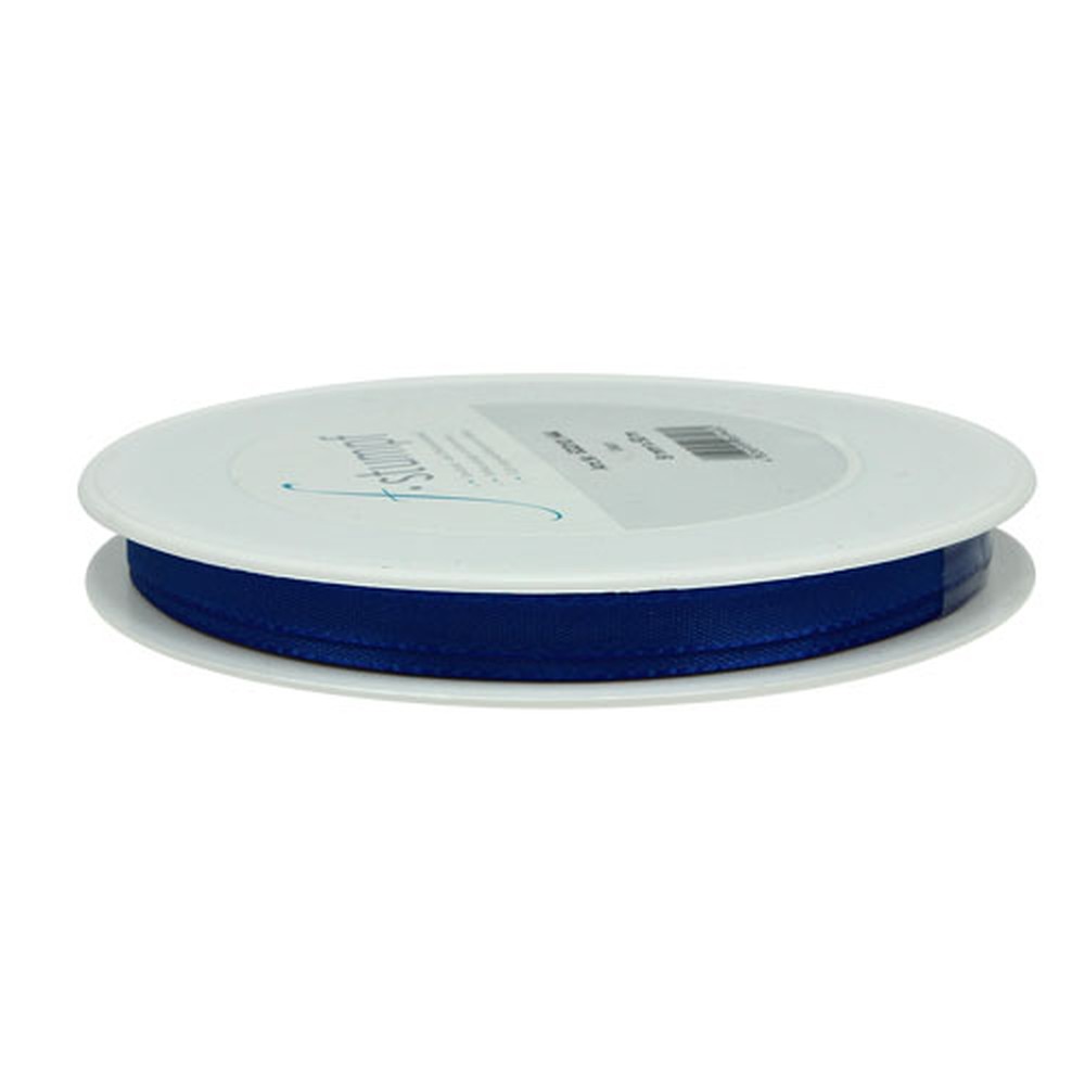 Das Geschenk- und Dekorationsband in Dunkelblau ist circa 8 Millimeter breit und in etwa 50 Meter lang.