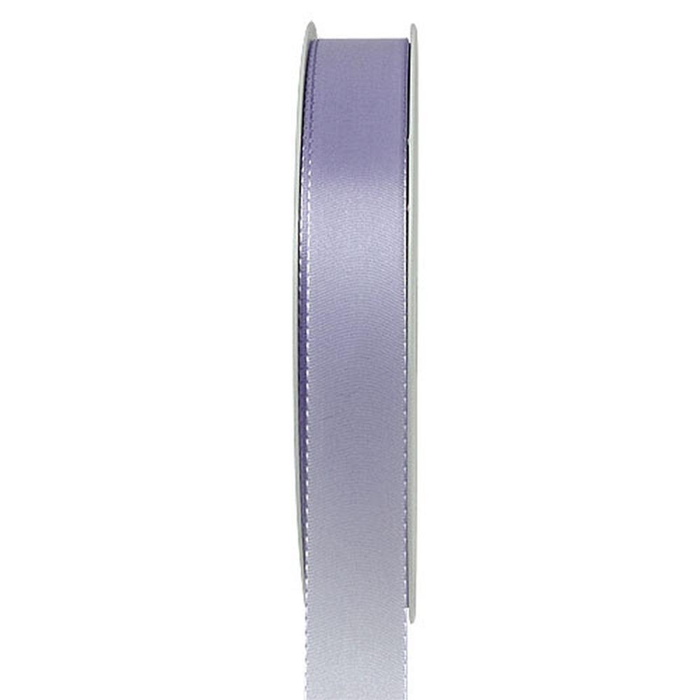 Das Geschenk- und Dekorationsband in hellem Flieder ist auf eine Rolle aus Kunststoff gewickelt und hat eine Länge von circa 50 Metern sowie eine Breite von ungefähr 15 Millimetern.