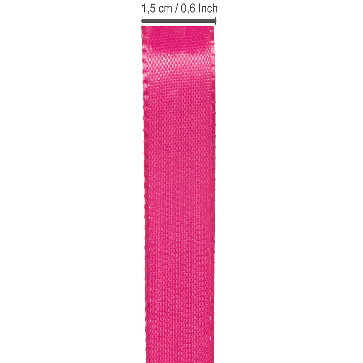 In der Breite misst das pinke Geschenk- und Dekorationsband etwa 15 Millimeter und in der Länge circa 50 Meter. Es besteht zu 100% aus Polyester und wird Ihnen auf einer Spule aus Kunststoff geliefert.