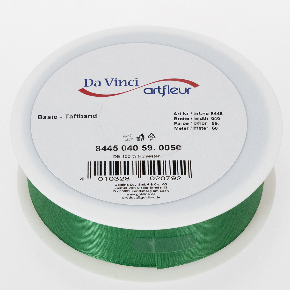 Das Geschenk- und Dekorationsband in Dunkelgrün wird mit seinen circa 50 Metern auf einer Kunststoffrolle geliefert. Die Breite beträgt in etwa 40 Millimeter.