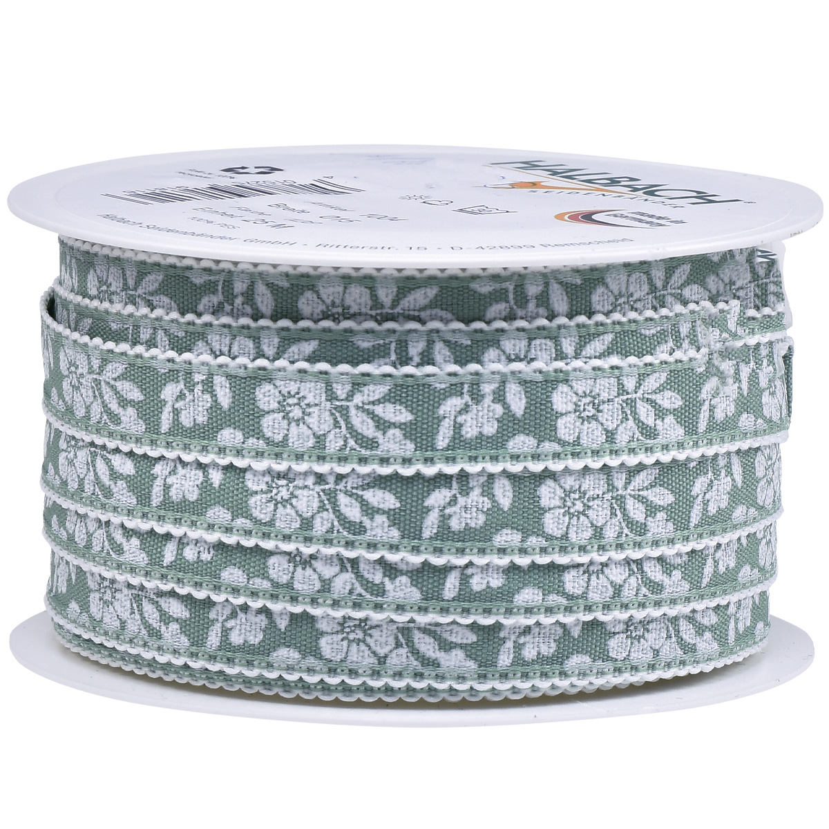 Geschenkband Blumen Dekoband Pastellgrün 15mm 25m