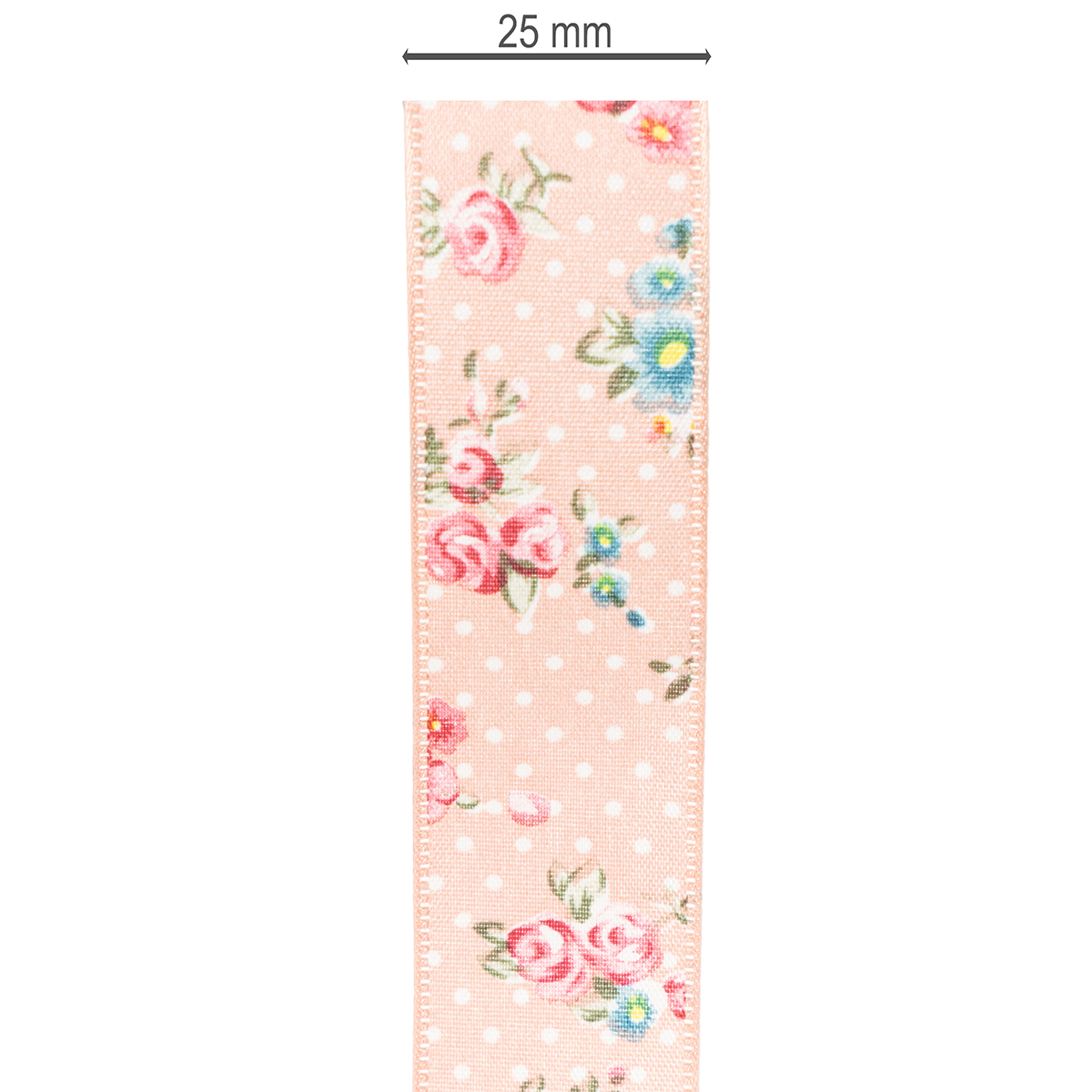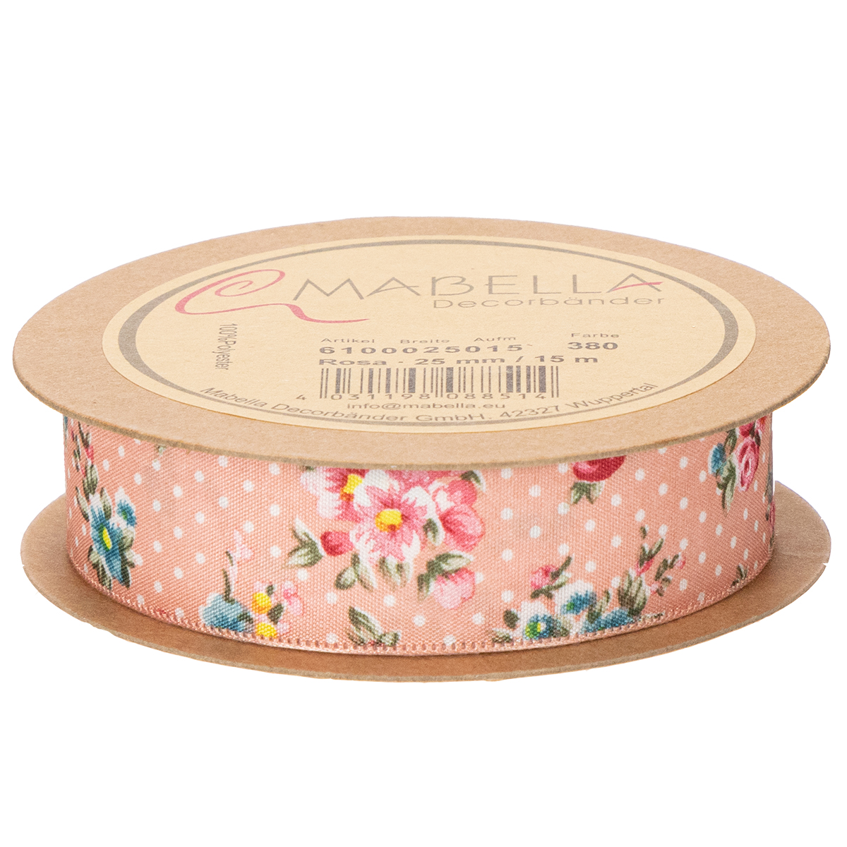 Geschenkband Blumenmuster für verspielte Geschenke und Bastelarbeiten 2,5cm 15m