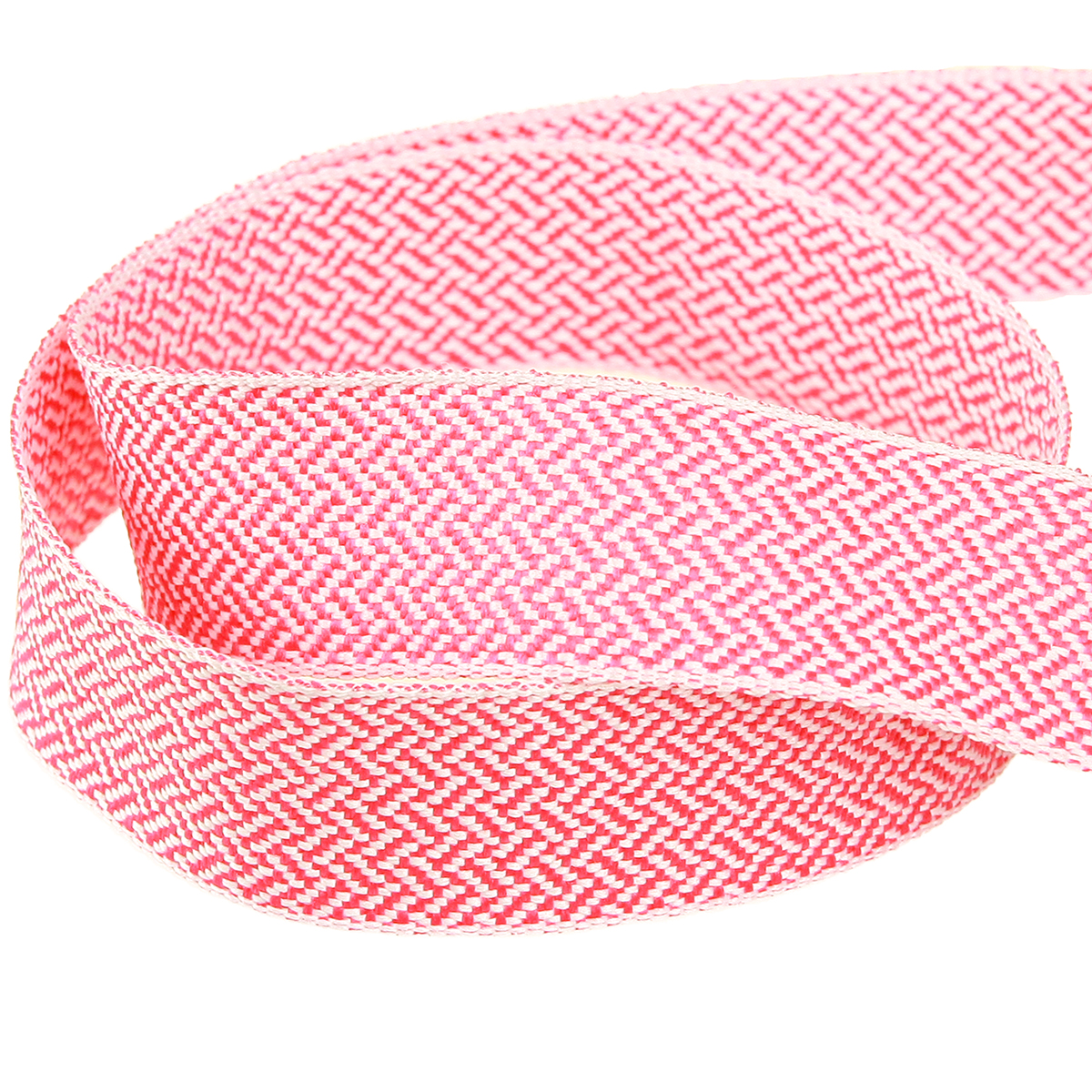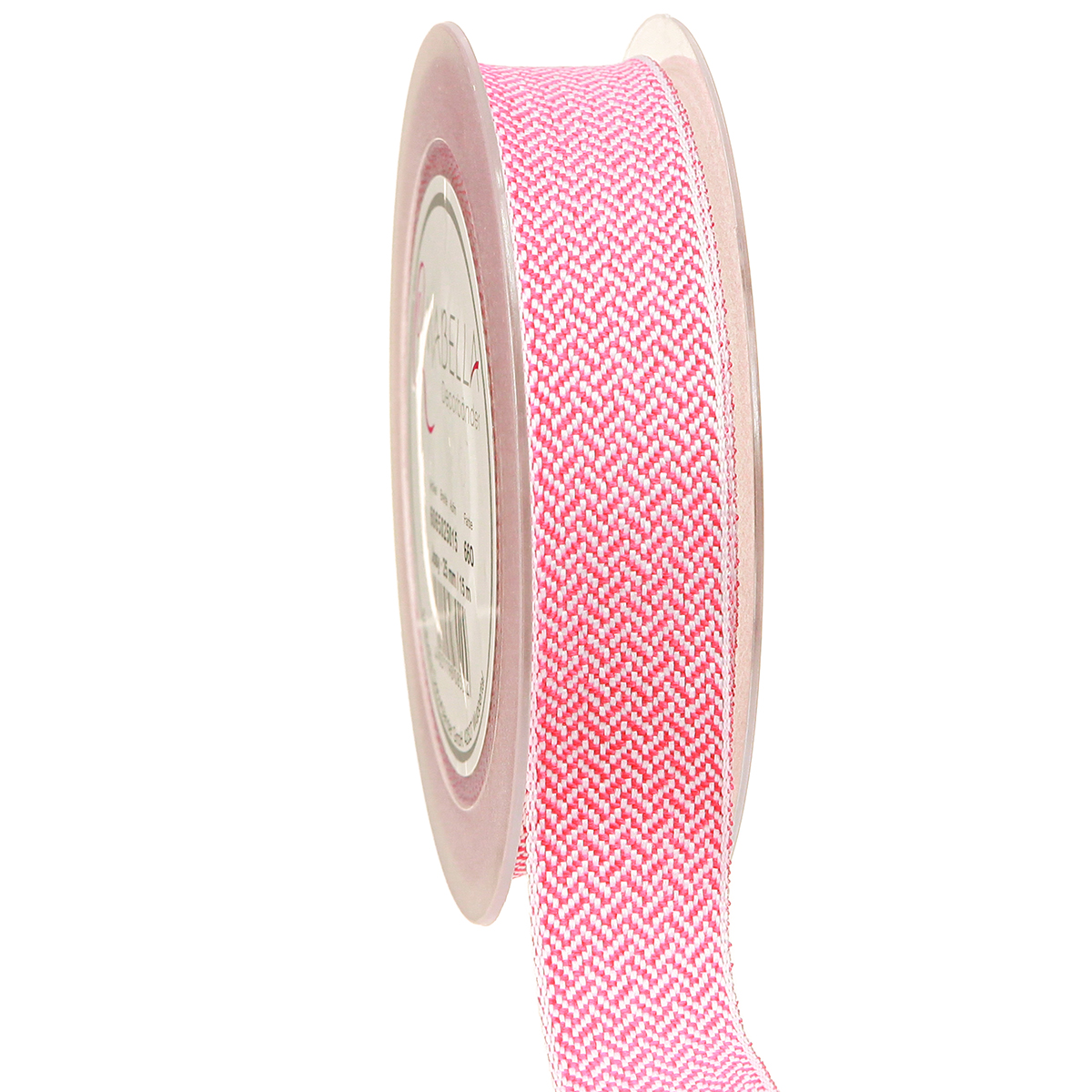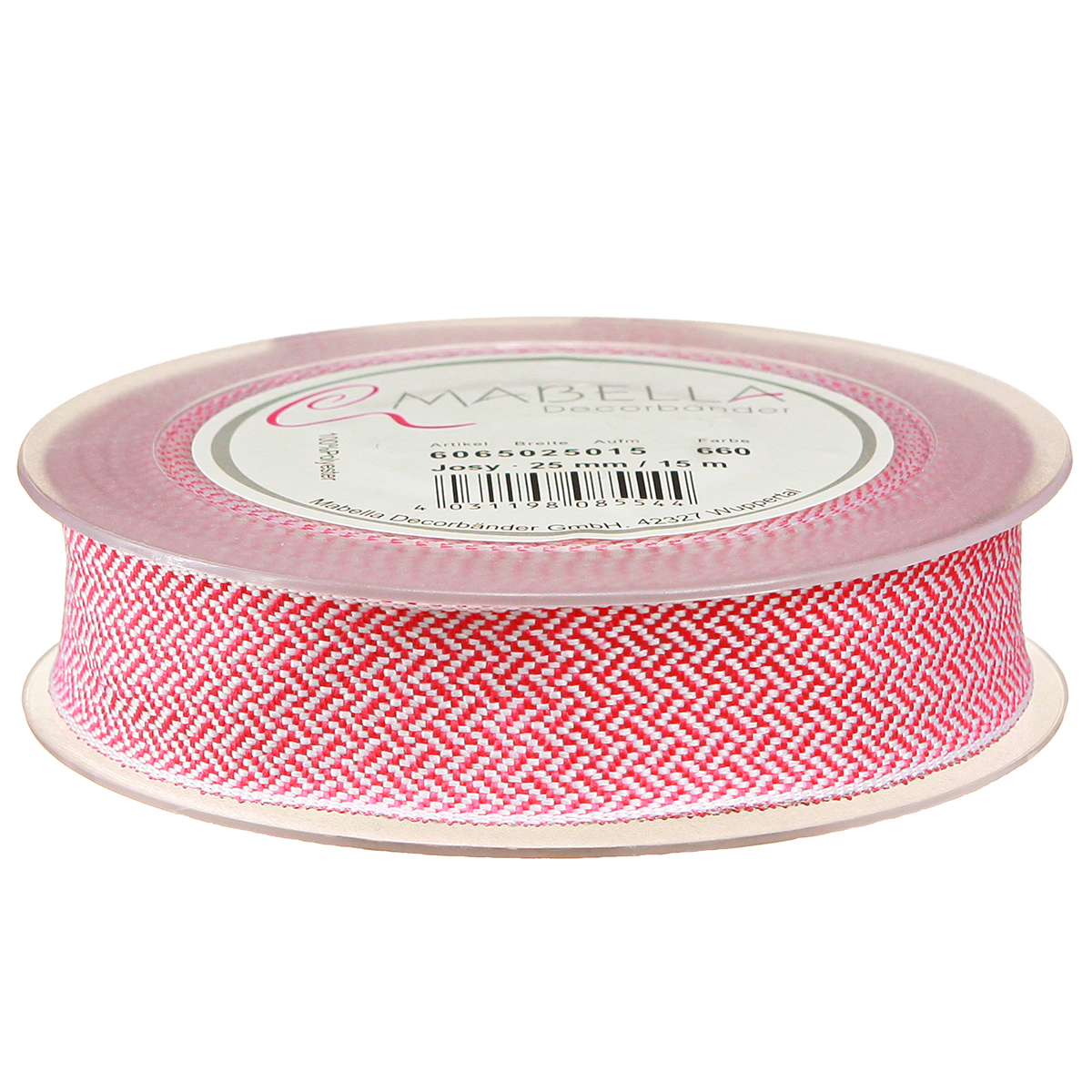Geschenkband Fischgrätmuster Band Weiß Pink 25mm 15m