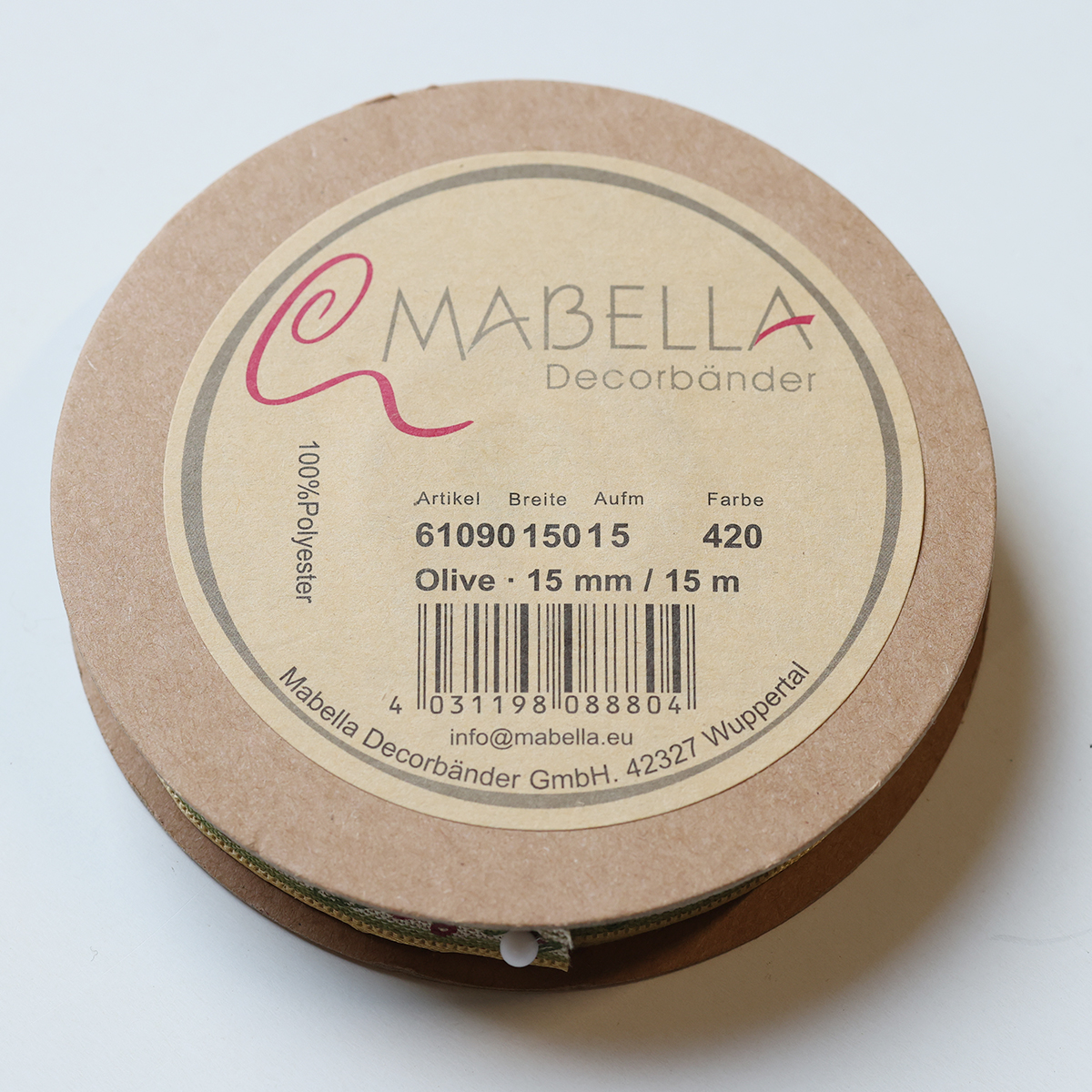 Geschenkband Olivenzweig mit eleganten Zweigen und Oliven 1,5cm 15m