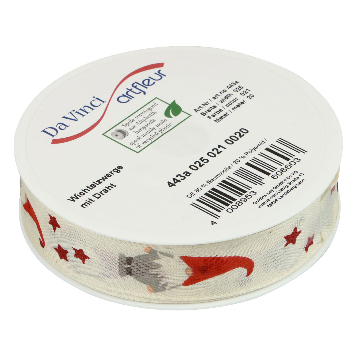Geschenkband Weihnachtsband Wichtel Creme 25mm 20m