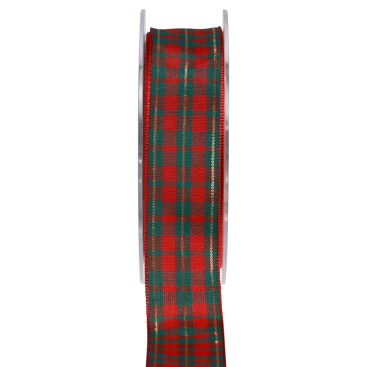 Produktname: Geschenkband kariert Stoffband Rot Grün Schottisch 25mm 20m