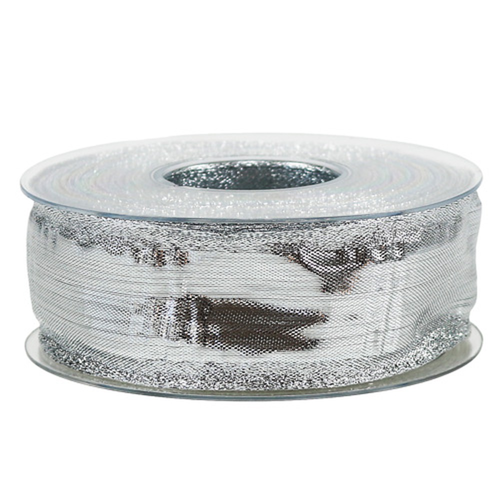 Produktname: Dekoband Silber mit Drahtkante 40mm 25m