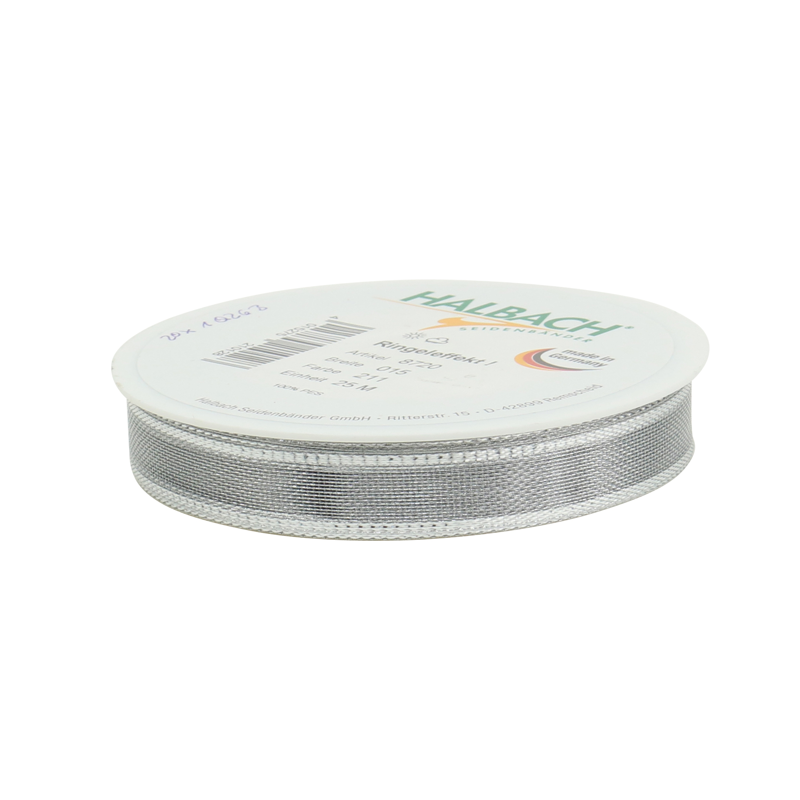 Produktname: Geschenkband Silber Ringeleffekt 15mm 25m