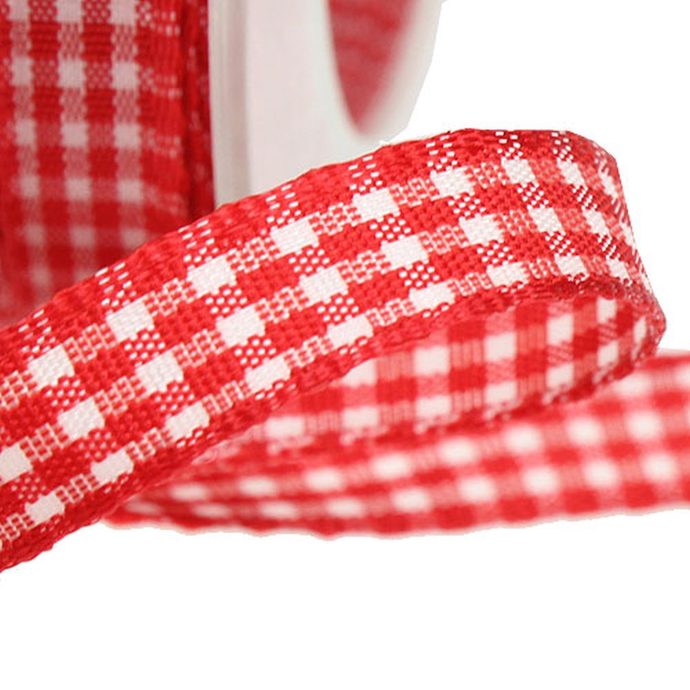 Ruban cadeau avec lisière 15mm 20m à carreaux rouges
