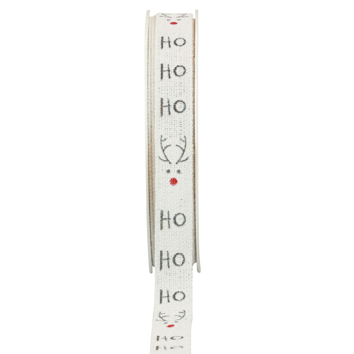 Ruban cadeau Noël Ruban de Noël Hohoho blanc 15mm 20m