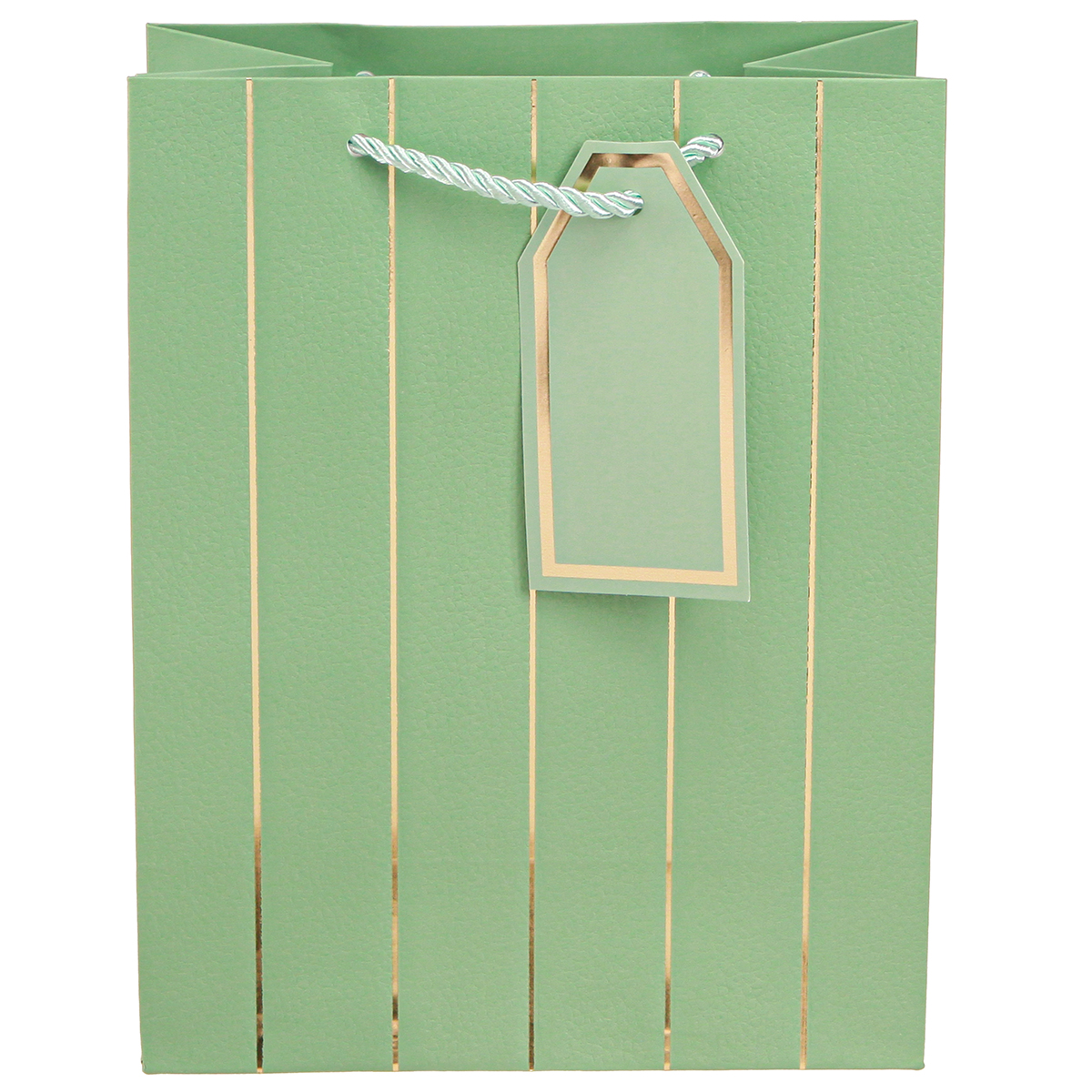 Busta regalo verde chiaro righe dorate 18×10×23 cm 1 pz