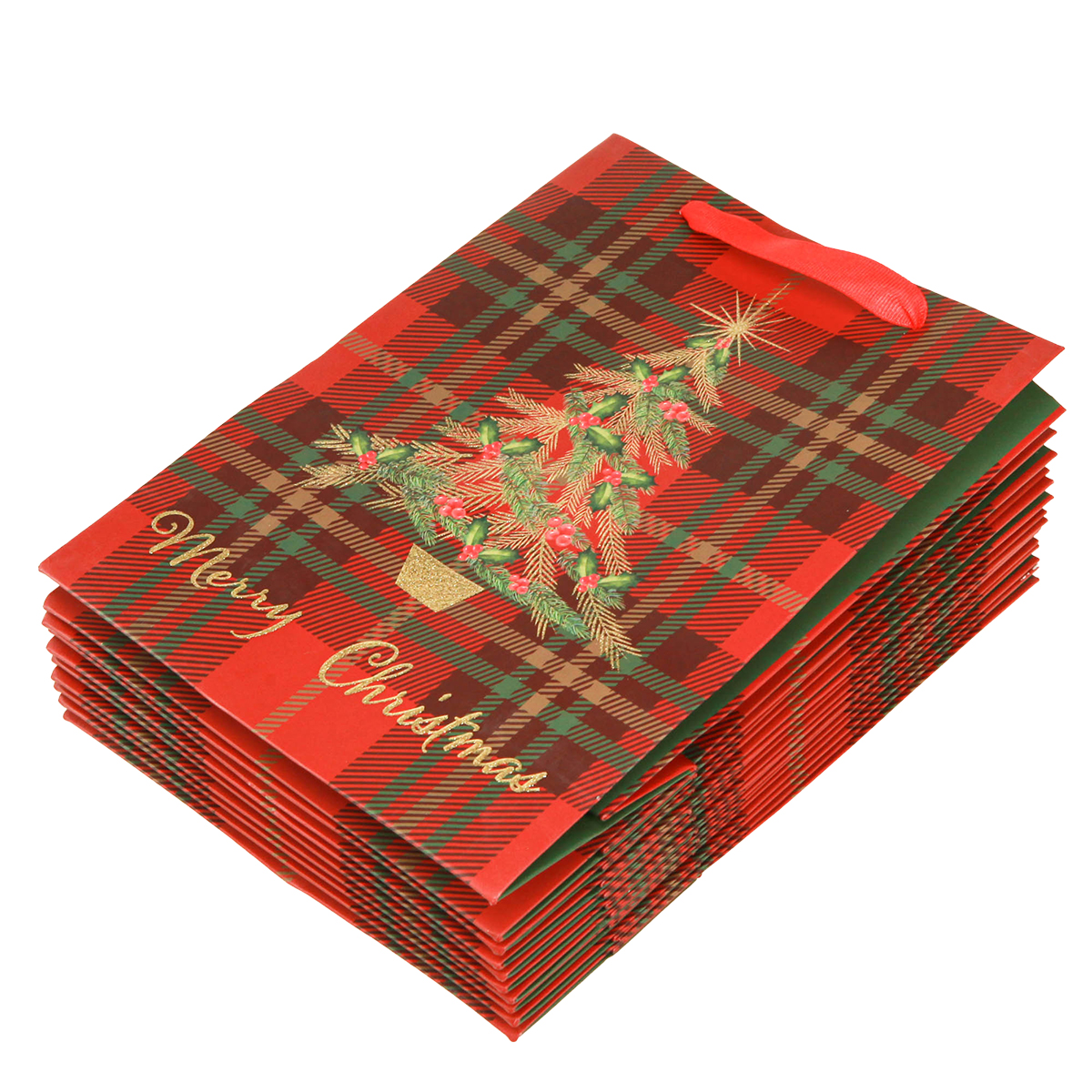 - 10 pochettes cadeaux au design classique rouge et vert, à carreaux