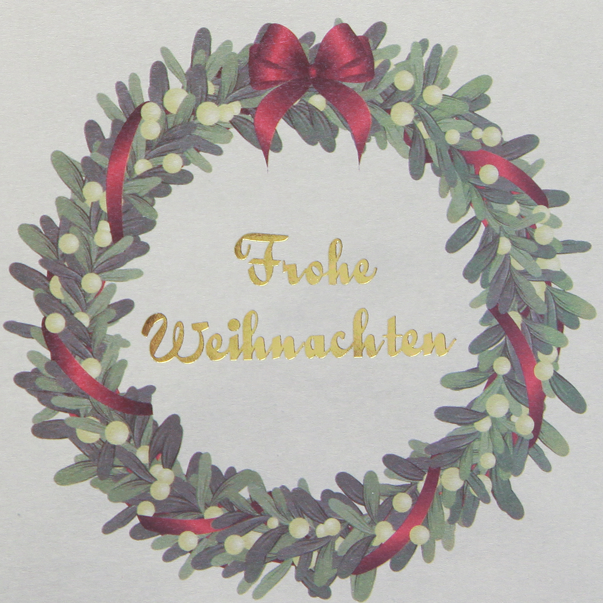 - Edles Grau mit goldenem Schriftzug "Frohe Weihnachten" und festlichem Weihnachtskranz