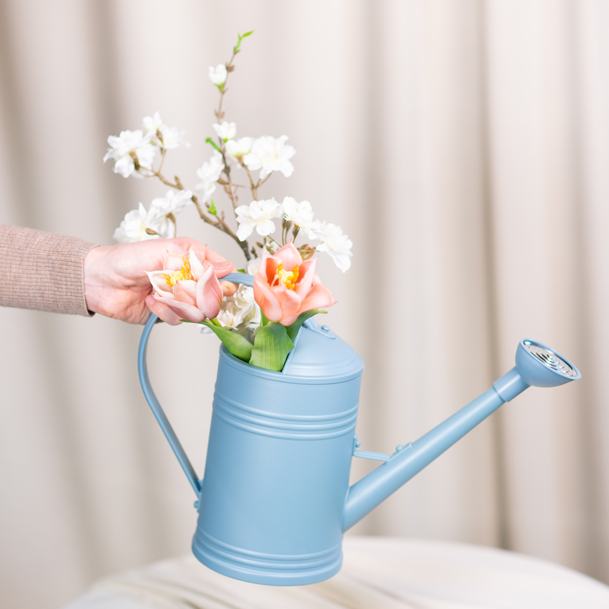 Diese Gießkanne begeistert auf ganzer Linie, und das gleich aus mehreren Gründen. Erst mal zur Optik: Das nostalgische Retro-Design in einem zeitlosen matthellen Blauton macht sie zu einem wahren Schmuckstück in jedem Haushalt. Egal, ob sie bei Ihnen auf dem Balkon steht oder im Regal neben Ihren Zimmerpflanzen: Sie wirkt schlicht und stilvoll. Und das Beste? Die robuste Konstruktion aus hochwertigem Kunststoff sorgt für Langlebigkeit, während der schwarze Boden für zusätzliche Stabilität sorgt. So können Sie sich viele Jahre an ihr erfreuen.