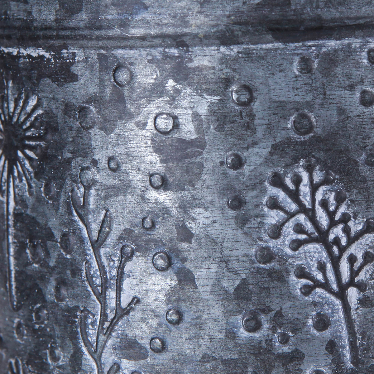 Arrosoir décoratif vintage en métal, gris à fleurs, H 13 cm Ø 13 cm