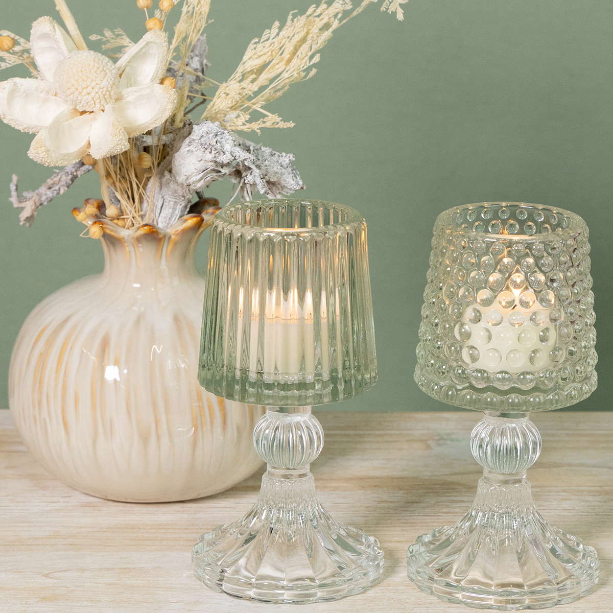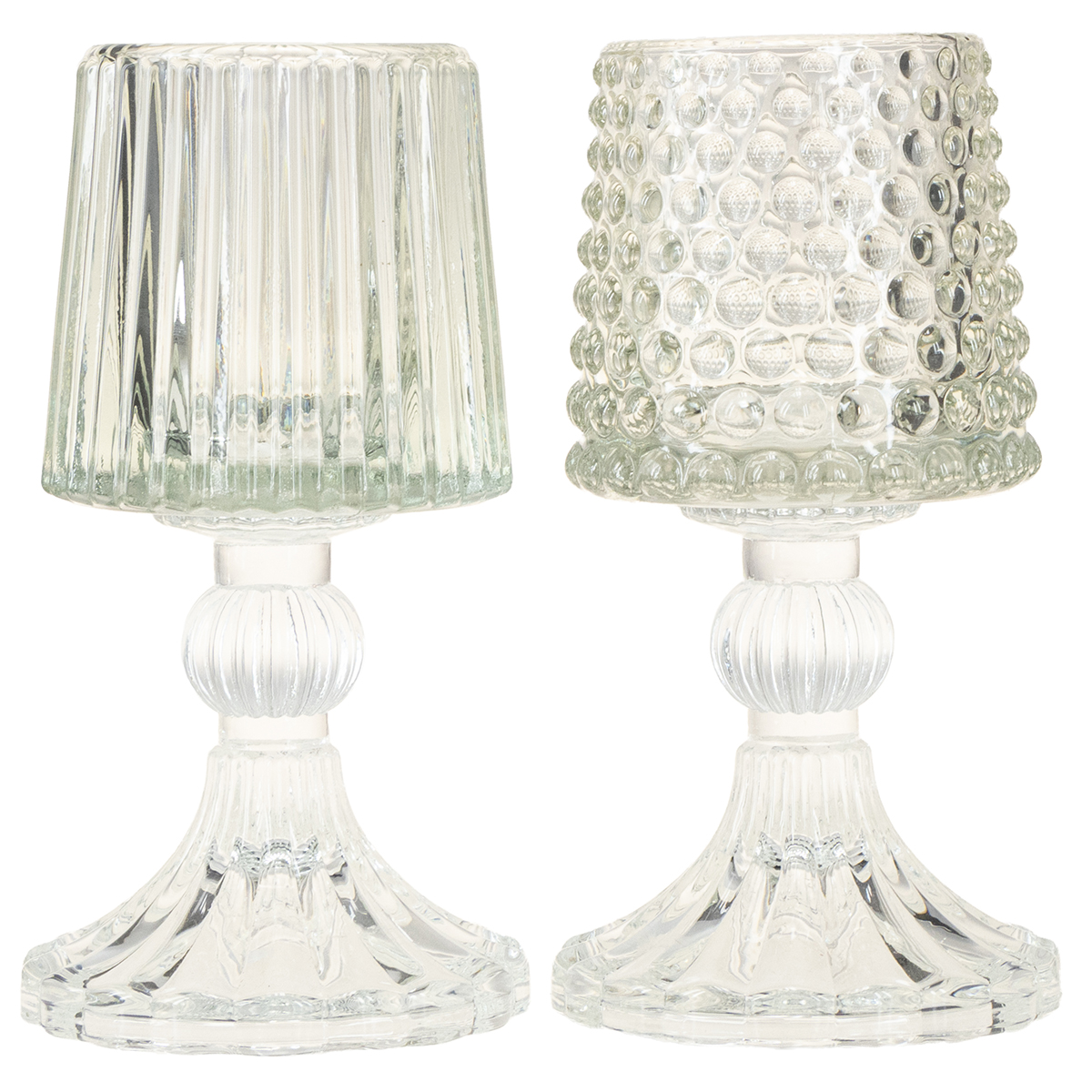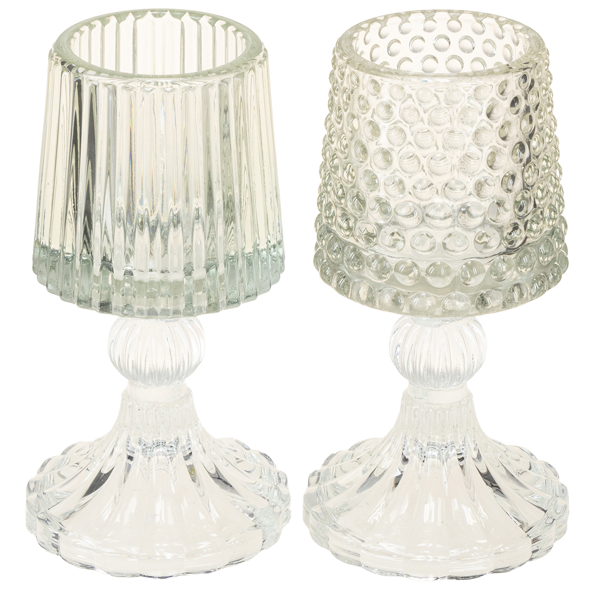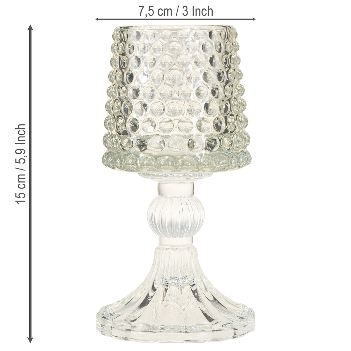 Glas Teelichthalter mit Fuß Punkte und Rillen H15cm 2St