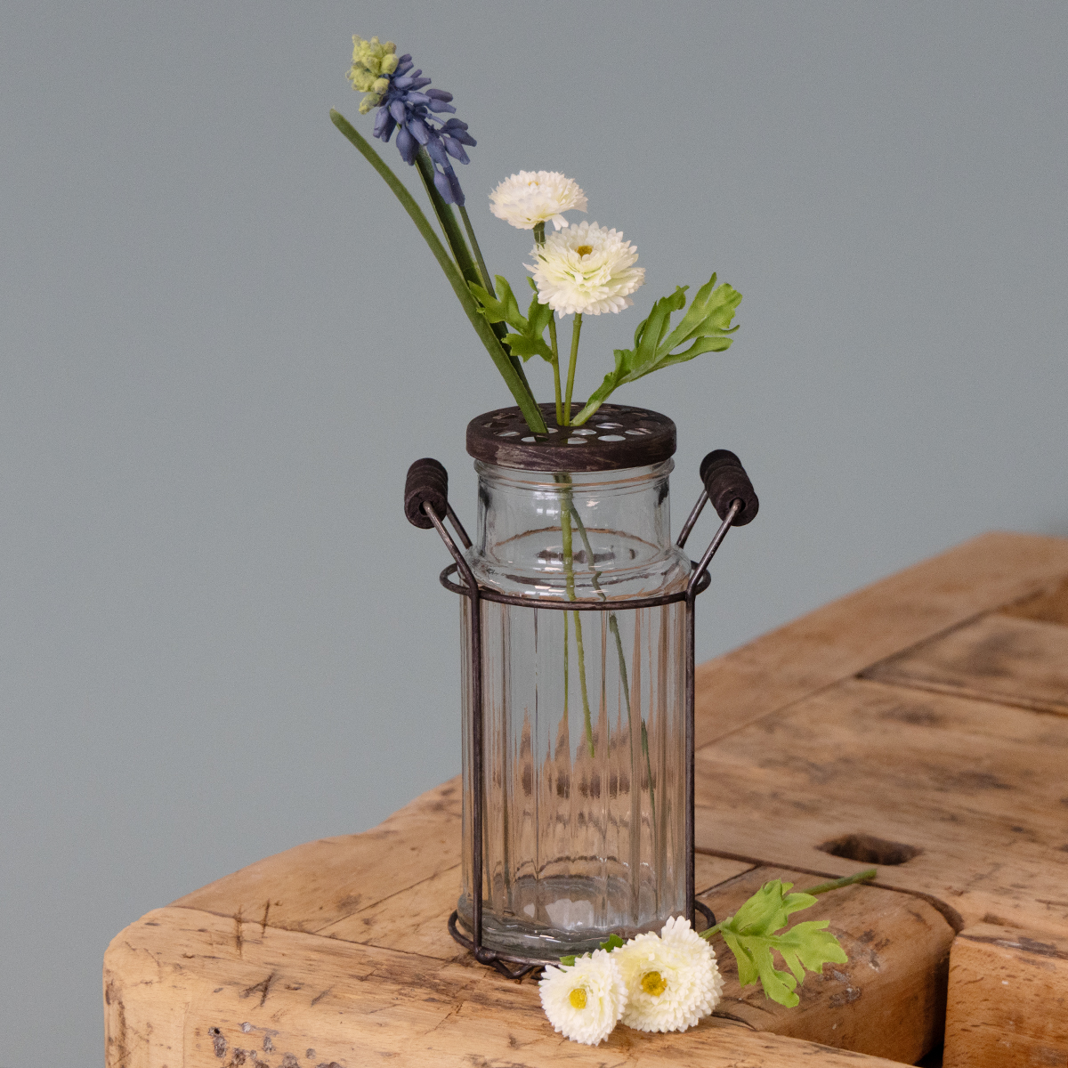 Vintage Glasflasche Metallkorb – Praktisch und charmant