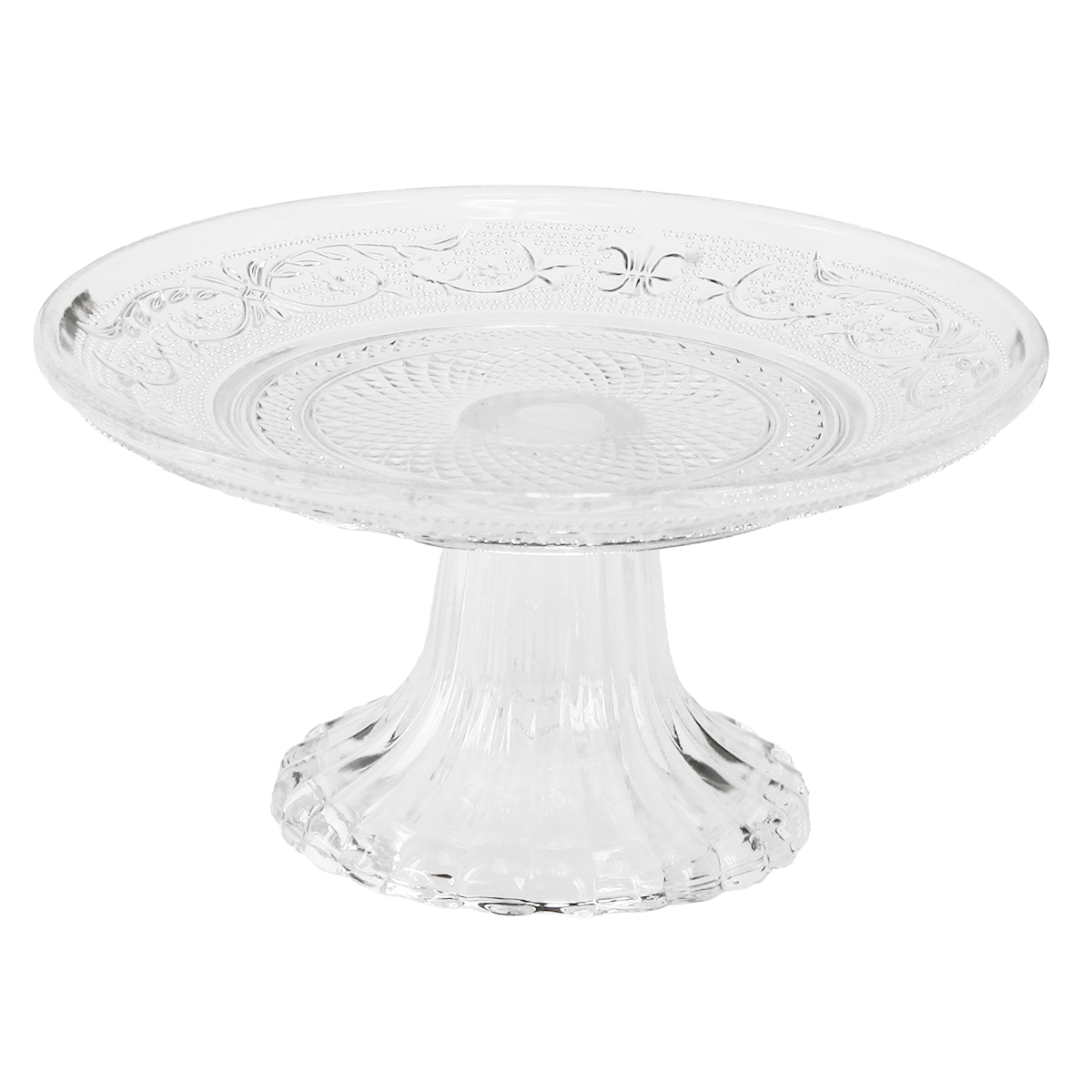 Produktname: Glasteller auf Fuß Flache Glasschale mit Muster Klar Ø15cm