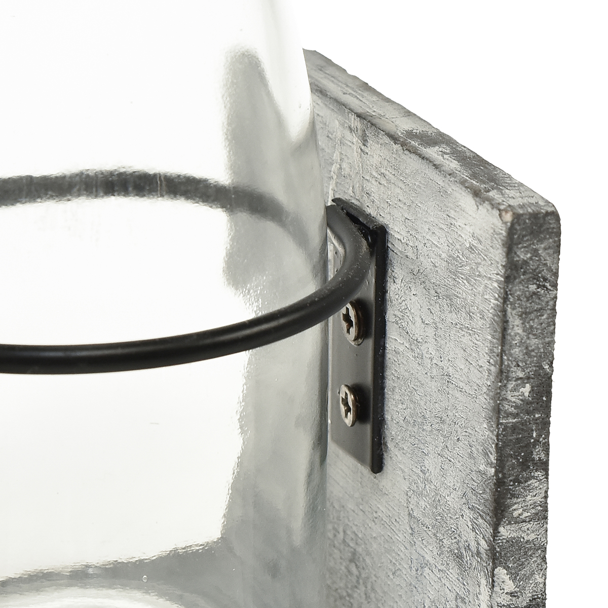 Ambiance magique avec le vase en verre dans le support en bois gris