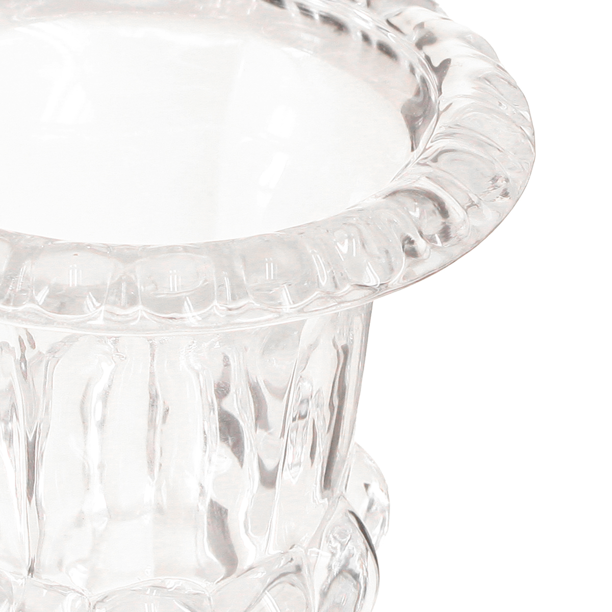 Combina il piccolo vaso di vetro con accessori per la casa marittimi o moderni per un look fresco. La forma dettagliata del vetro trasparente, che ricorda un cristallo, rifrange la luce in modo elegante, rendendo il vaso ideale come decorazione da tavola per matrimoni e altre occasioni romantiche.