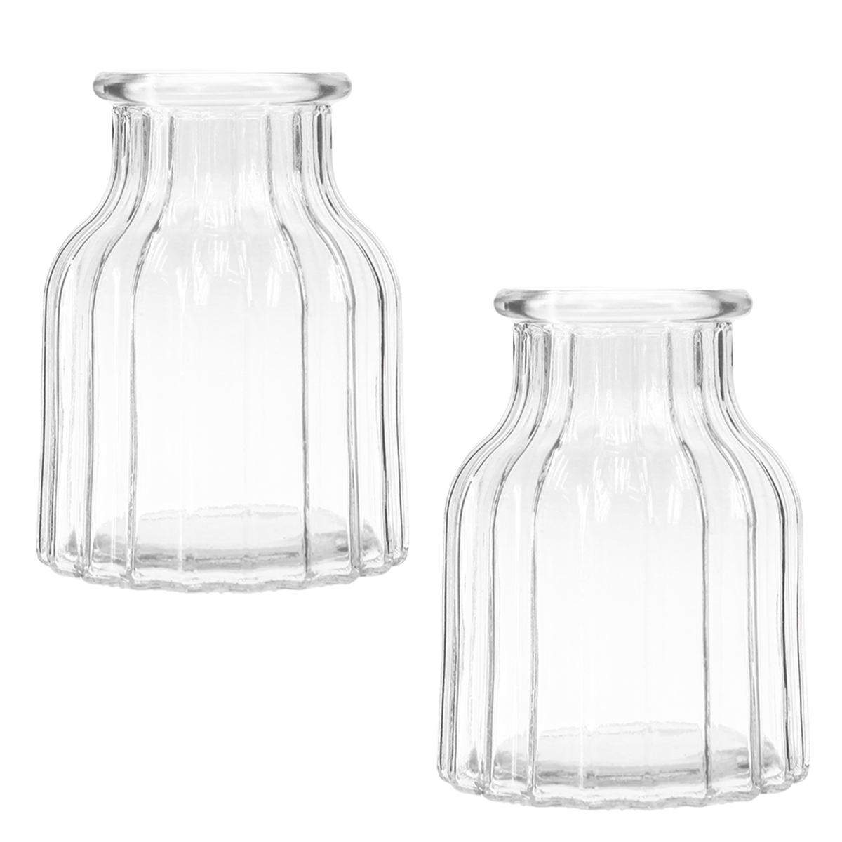 Vase Glas Rillen Glasvase Dekoglas Klar Ø11cm H15cm 2St