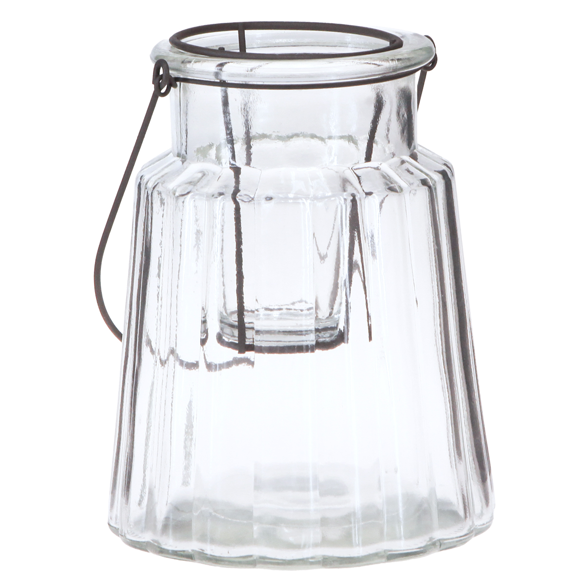 Lanterne en verre avec anse verre clair Ø14cm H18cm