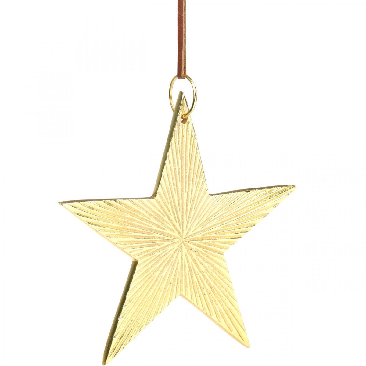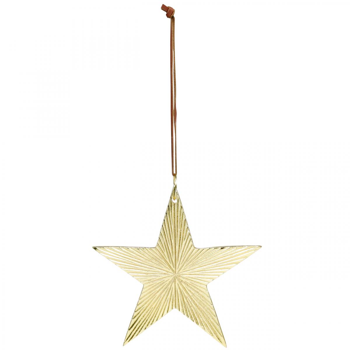 Dieser Goldstern zum Hängen strahlt geradezu, wenn Sie ihn in Ihrer Adventsdeko anbringen! Der Dekohänger für Weihnachten besteht aus Metall und ist beidseitig mit einer von der Mitte des Dekosterns ausgehenden Prägung von Linien verziert.Hängen Sie die schöne Sterndeko als Weihnachtsanhänger an Ihren Tannenbaum oder befestigen Sie den Christbaumschmuck als Wanddeko oder oder festliche Fensterdeko in ihrem Zuhause. Am schönsten wirken die Sterne aus Metall, wenn sie gemeinsam mit einer Lichterkette oder in der Nähe von brennenden Kerzen angebracht werden. Durch seine glänzende Oberfläche und den Facettenartigen Gravurschliff funkelt der Weihnachtsstern dann als Metallanhänger ganz fantastisch!