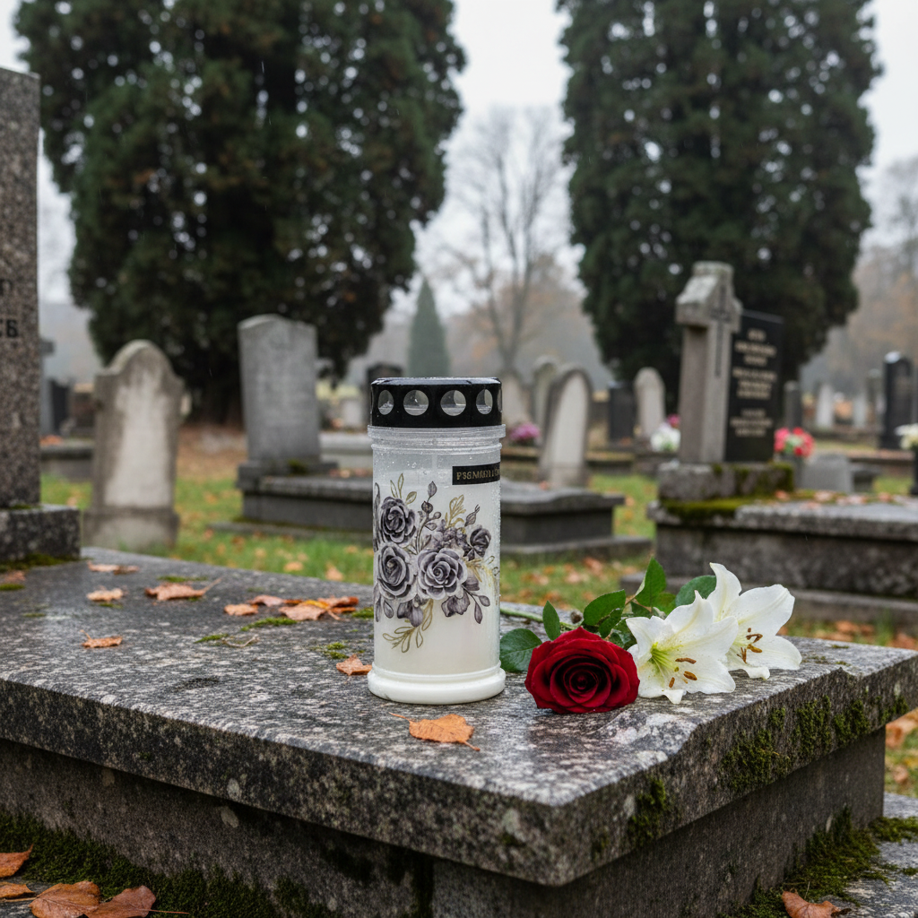 Edle Grabkerzen mit Blumenmotiv – ein Symbol der Erinnerung