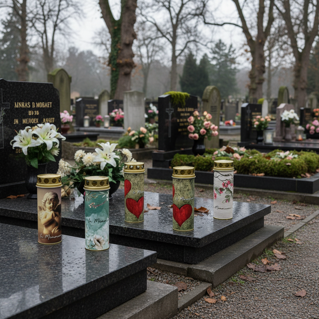 - Verwendungszweck: Grabkerzen für den Außenbereich, insbesondere zur Trauerbewältigung und zum Gedenken an verstorbene Haustiere.
