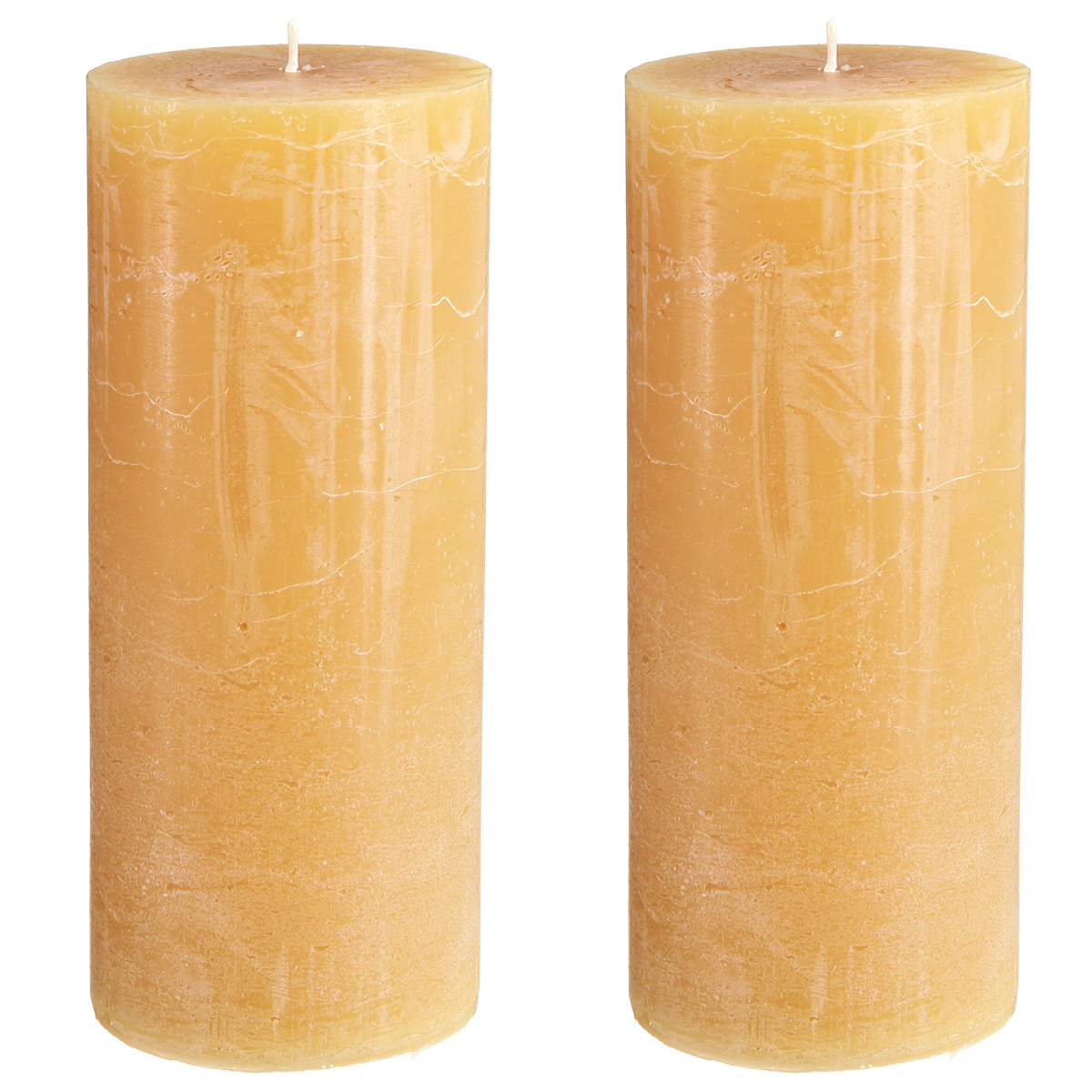 Set di candele a colonna XXL, color miele, crea un'atmosfera accogliente, 85x200 mm, durata di combustione 100 ore, confezione da 2