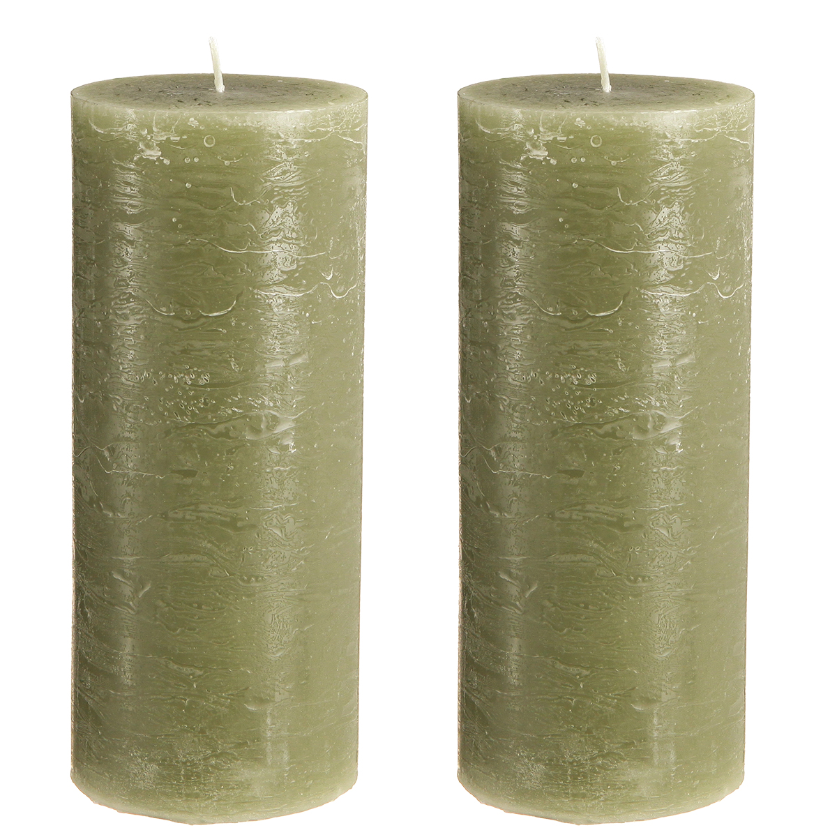 2er Set Stumpenkerzen Olivgrün Groß, Dekorative Kerzen für Tischdeko & Wohnambiente, 85x200mm, Lange Brenndauer