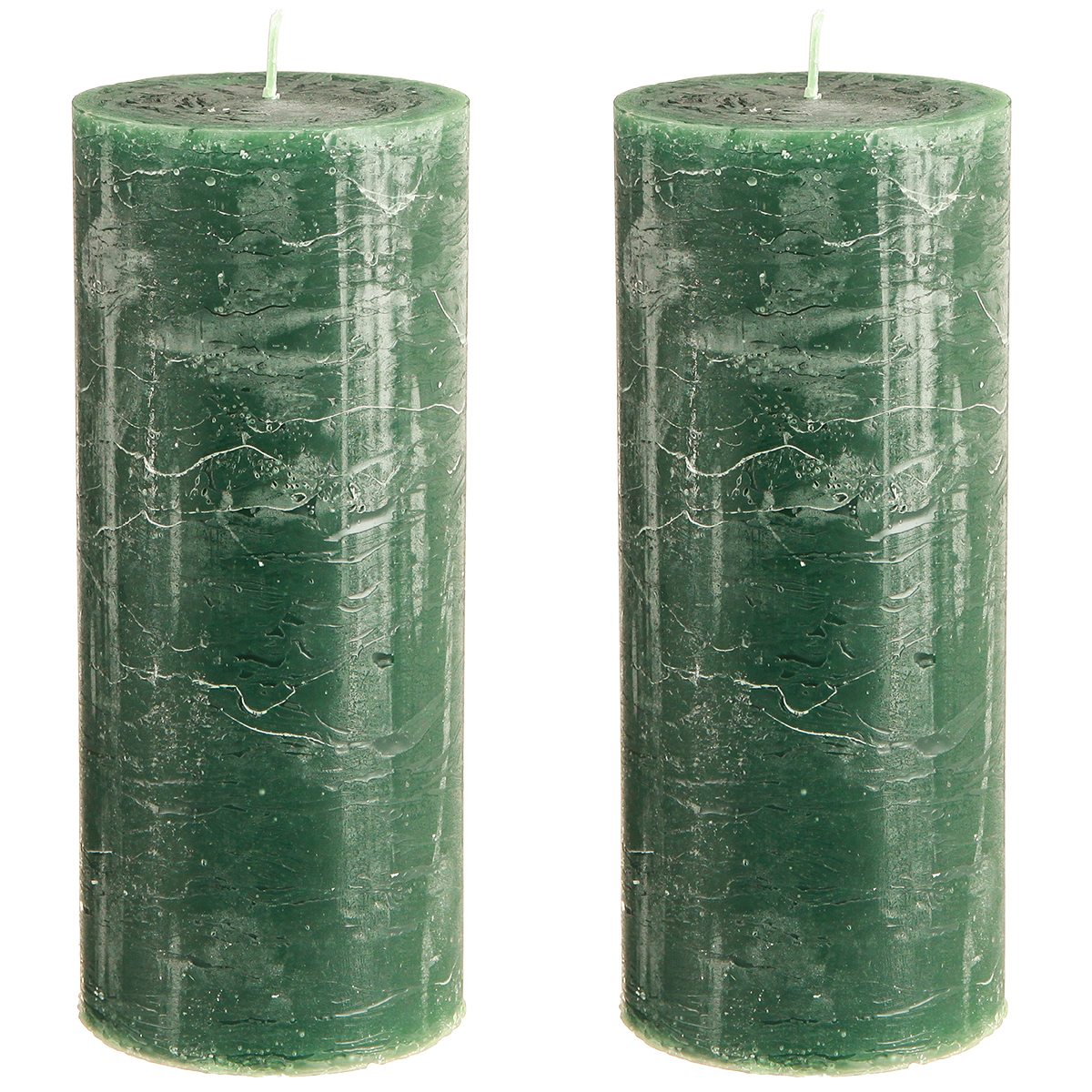Lot de 2 bougies piliers, vert foncé, 85 x 200 mm – Bougies décoratives élégantes et longue durée pour une ambiance chaleureuse
