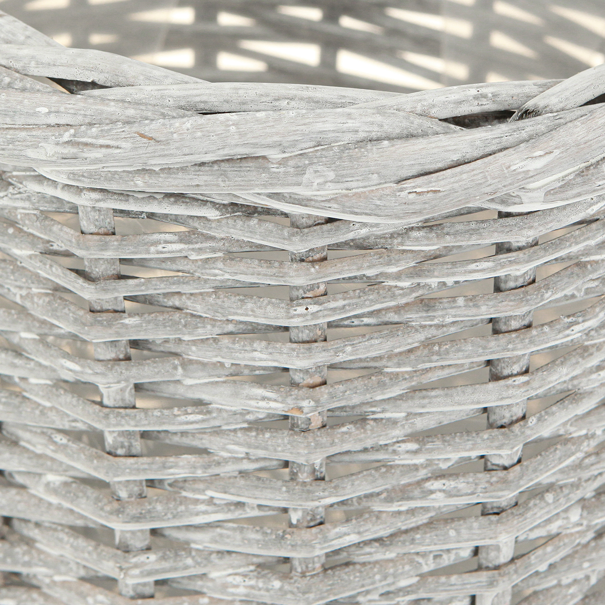 Verleihen Sie Ihrem Wohnraum mit einem großen Korb in Weißgrau einen Hauch von rustikalem Charme. Dieses exquisite Set aus drei unterschiedlich großen Pflanzkörben ist ideal für alle, die gerne mit Pflanzen dekorieren, sei es als Hobbygärtner oder passionierter Dekorateur. Die Körbe sind aus hochwertigem Weidengeflecht gefertigt und präsentieren sich in einem stilvollen Shabby Chic-Design, das jedem Raum Wärme und Eleganz verleiht. Die weißgrau gewaschene Farbe passt perfekt in moderne wie auch klassische Einrichtungsstile und unterstreicht die natürliche Schönheit der verwendeten Materialien. Da die Körbe mit einer Pflanzfolie ausgekleidet sind, sind sie perfekt für Topfpflanzen geeignet und gewährleisten eine saubere und einfache Handhabung. Platzieren Sie sie in einem witterungsgeschützten Bereich und entdecken Sie die vielfältigen Dekorationsmöglichkeiten!