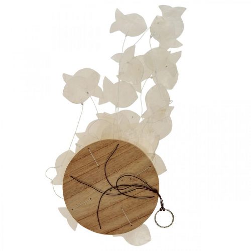Material: Capiz-Muscheln, Holz, Baumwollband, Metall